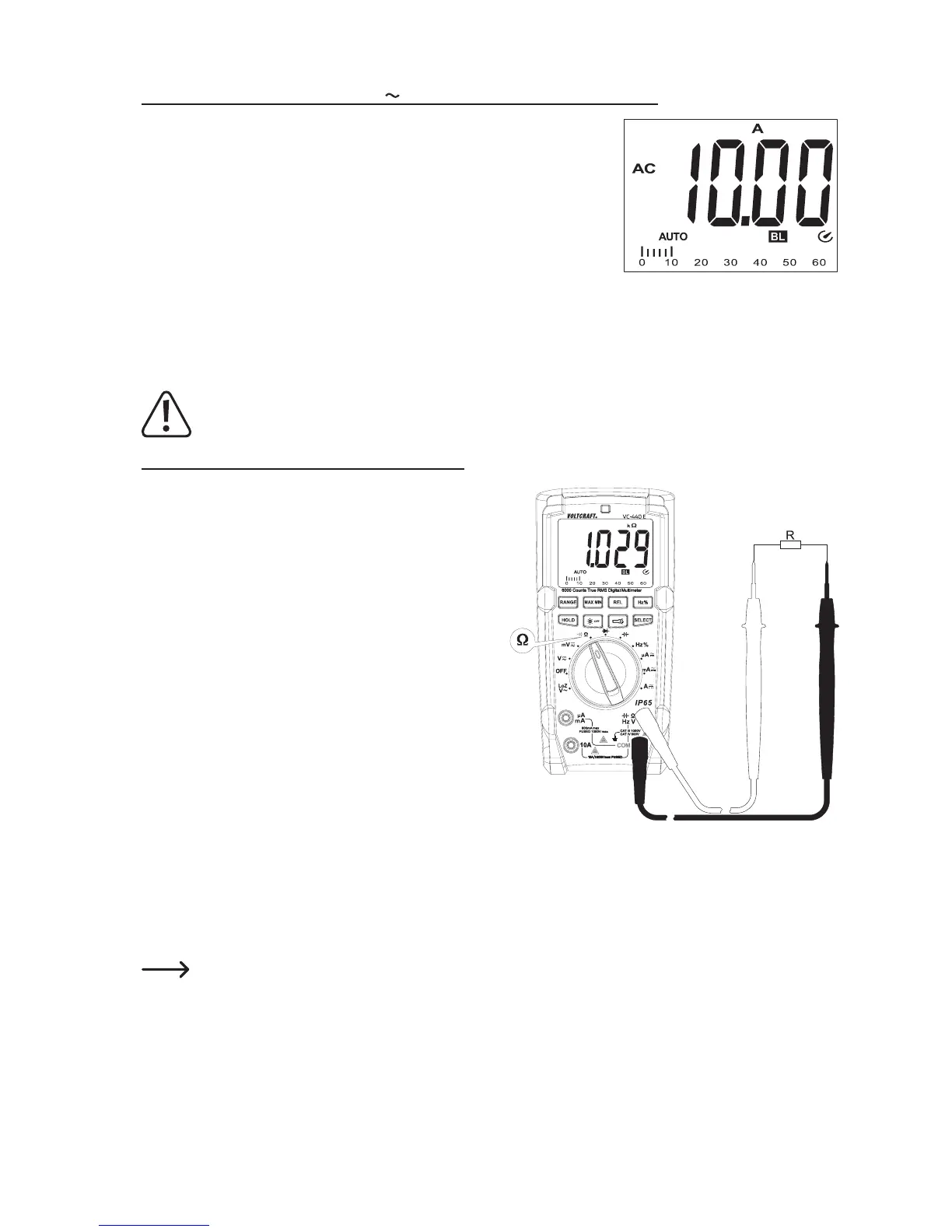 Zur Messung von Wechselströmen (A ) gehen Sie wie zuvor beschrieben vor.
