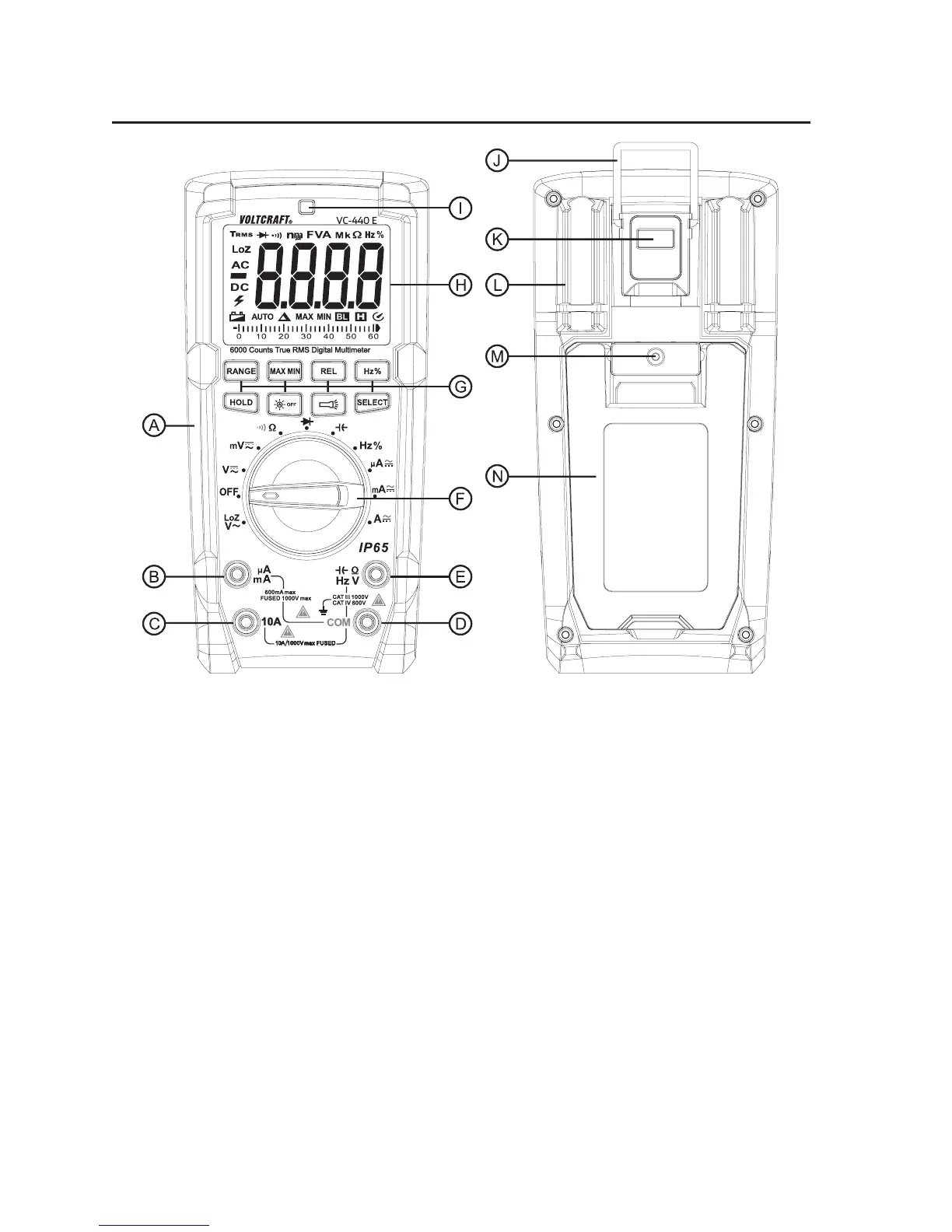 F Dial switch for selecting the measuring function