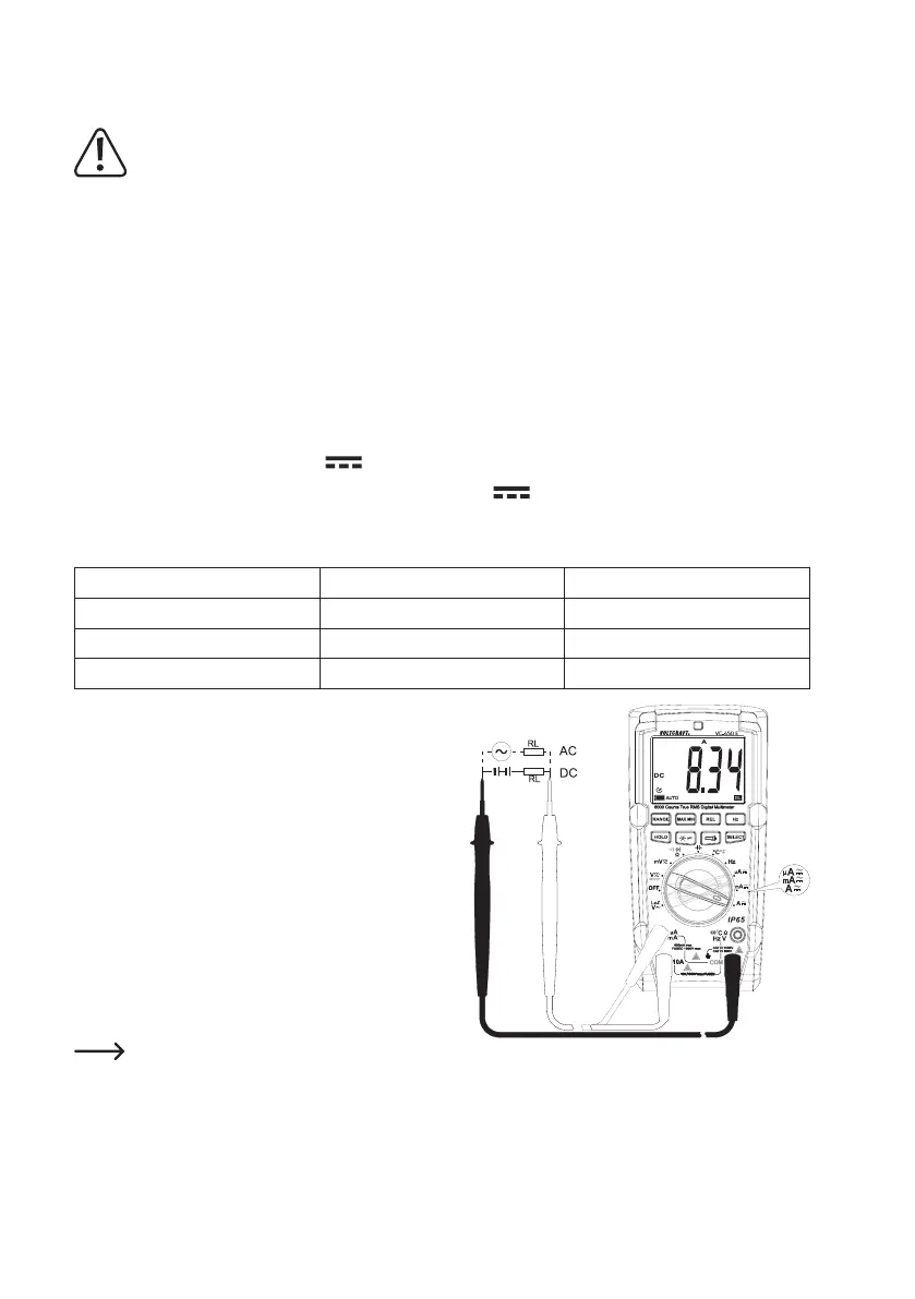 Voor het meten van gelijkstromen (A ) gaat u als volgt te werk: