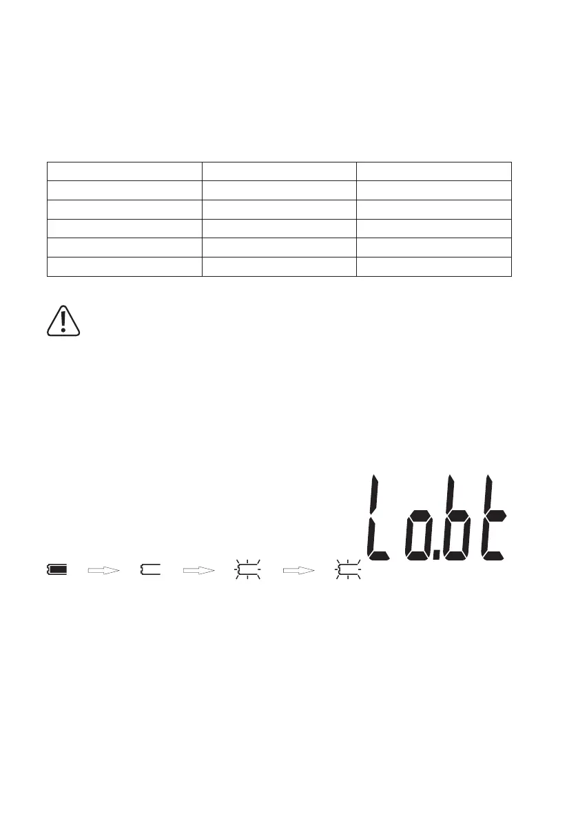 das Batterie-Wechselsymbol im Display erscheint, muss eine neue, volle Batterie eingesetzt werden.