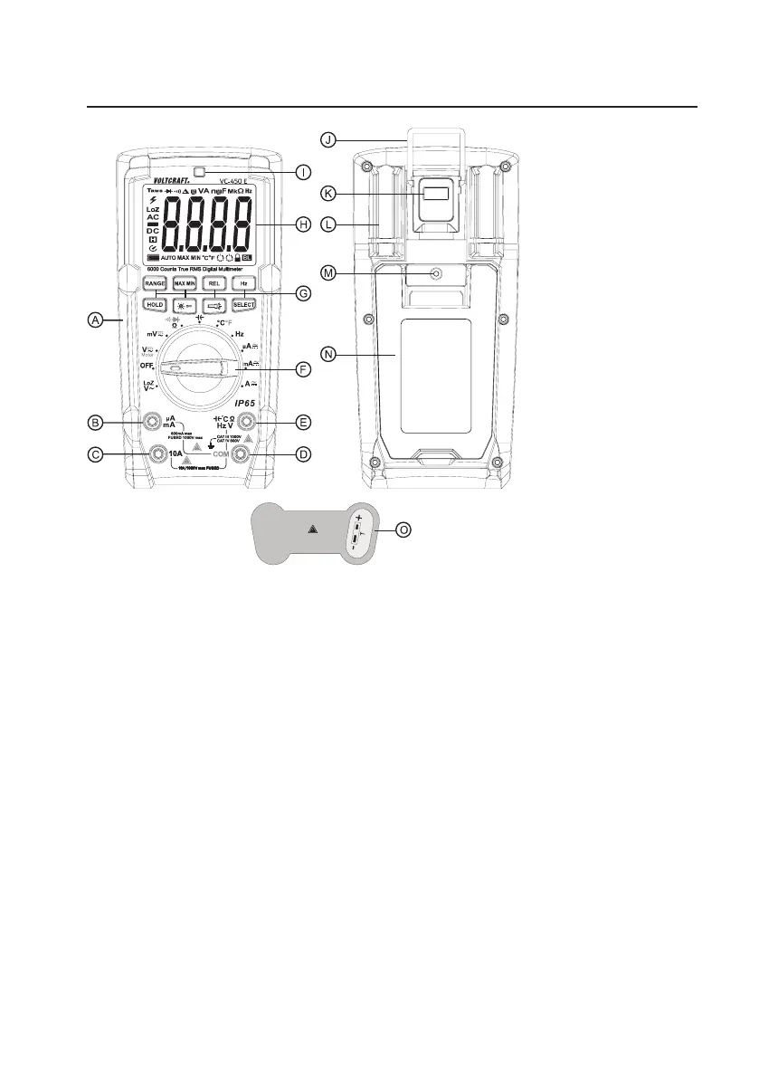 F Dial switch for selecting the measuring function