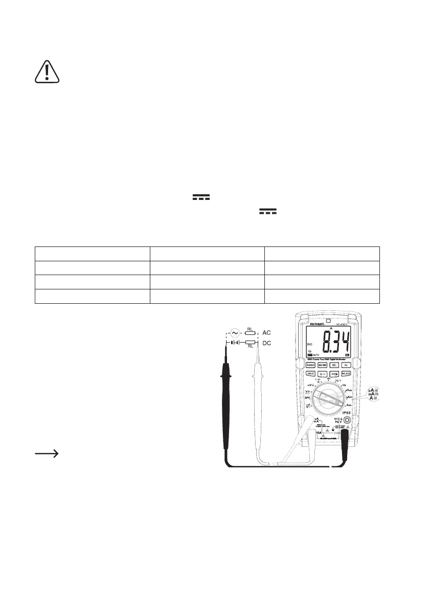 Proceed as follows to measure direct currents (A ):