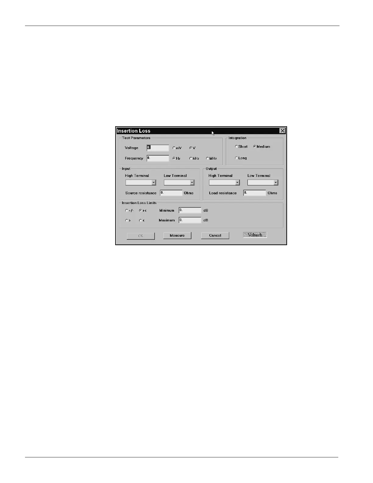 On selecting "ILOS Insertion Loss" from the available tests window, a dialogue box