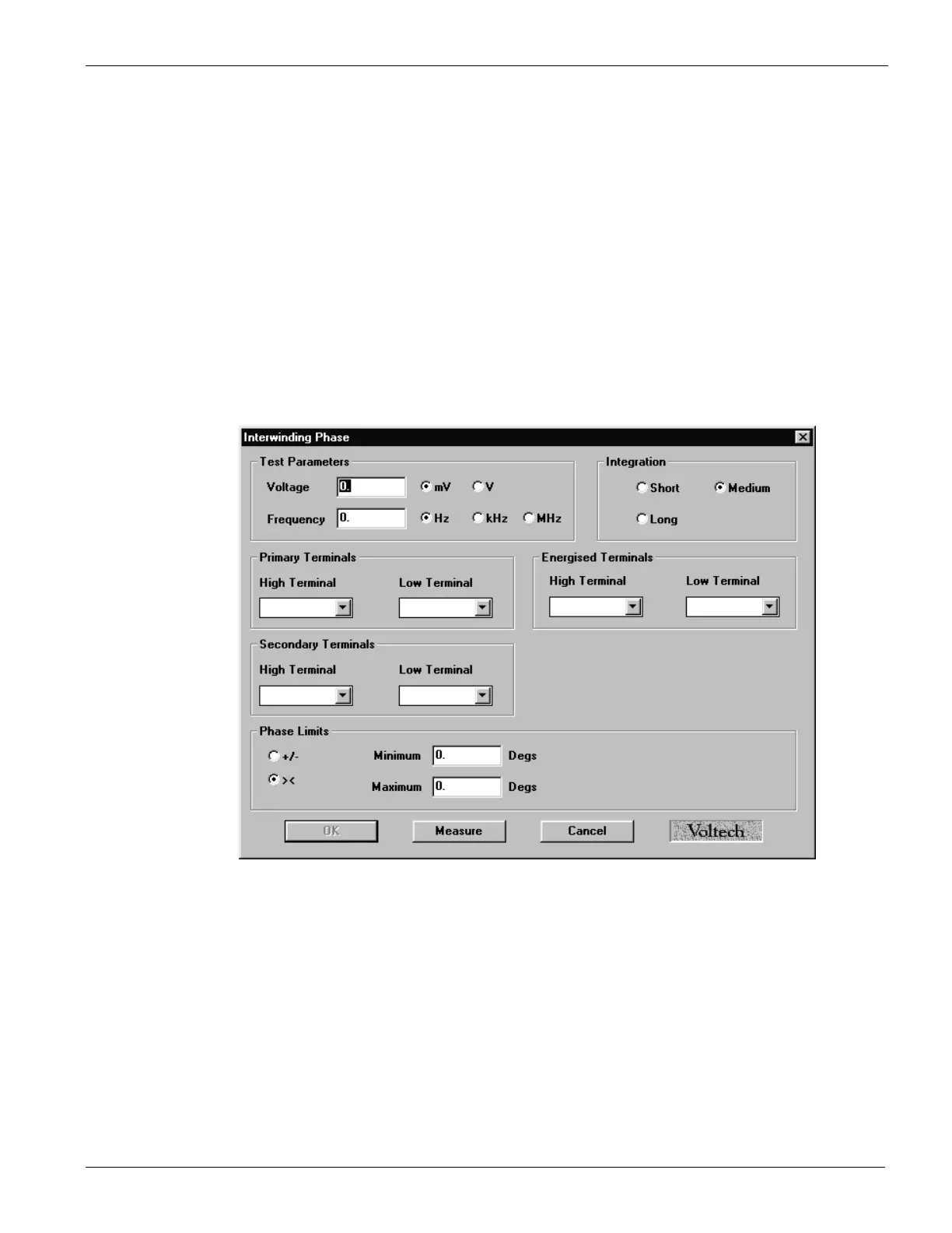 On selecting "PHAS Interwinding Phase" from the 'available tests' window, the