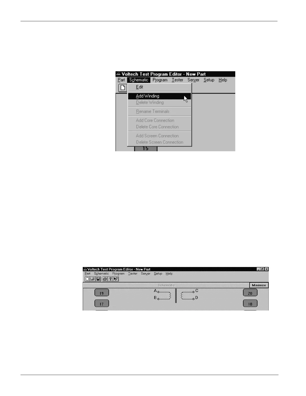 A dialogue box will ask you to name the terminals of the winding; the cursor will be