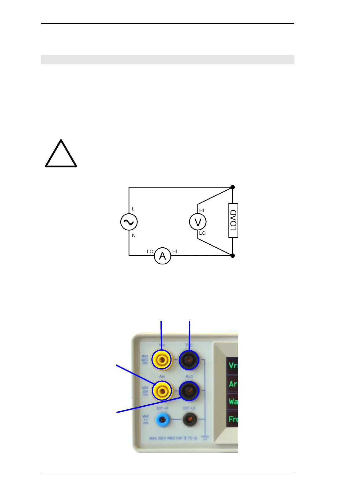 To measure power, connect the PM1000+‟s measuring terminals in parallel with the