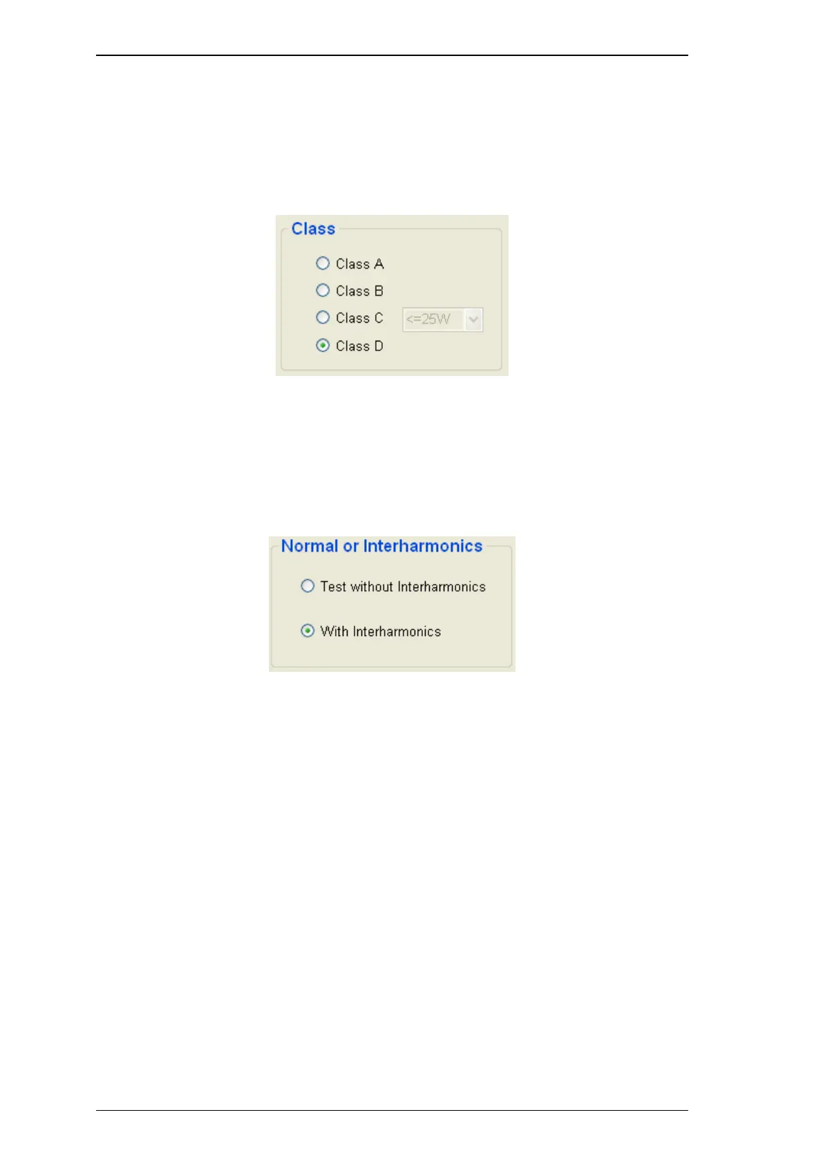 Select normal if you would like to test without inter-harmonics or select Inter-harmonics