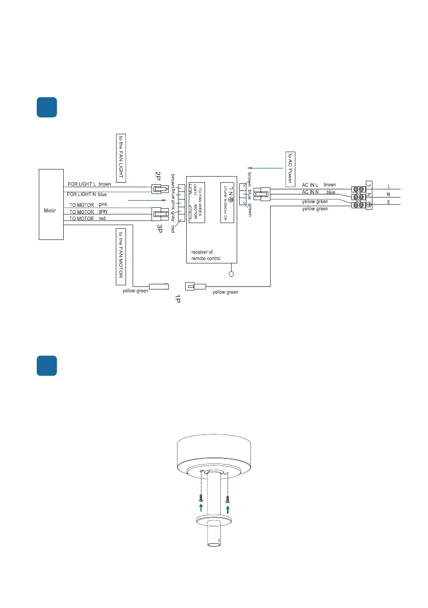 Take the canopy and twist onto the pre-loosened ceiling mount screws