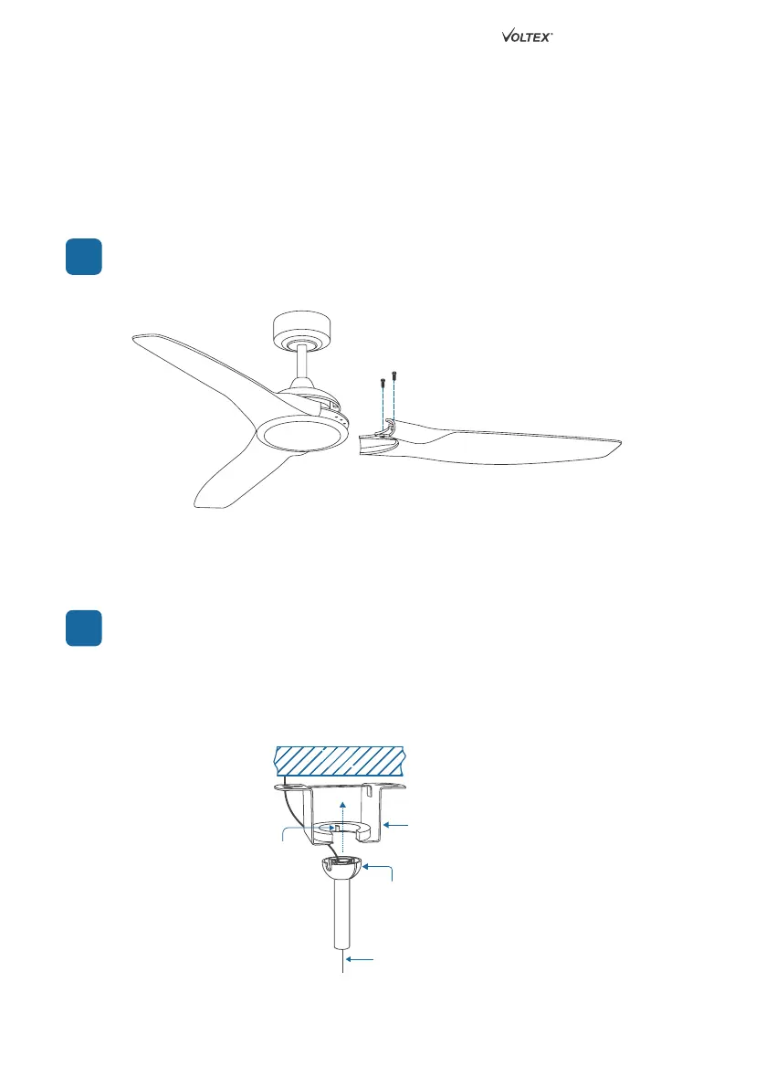 Attach fan blades to motor using blade screws provided.