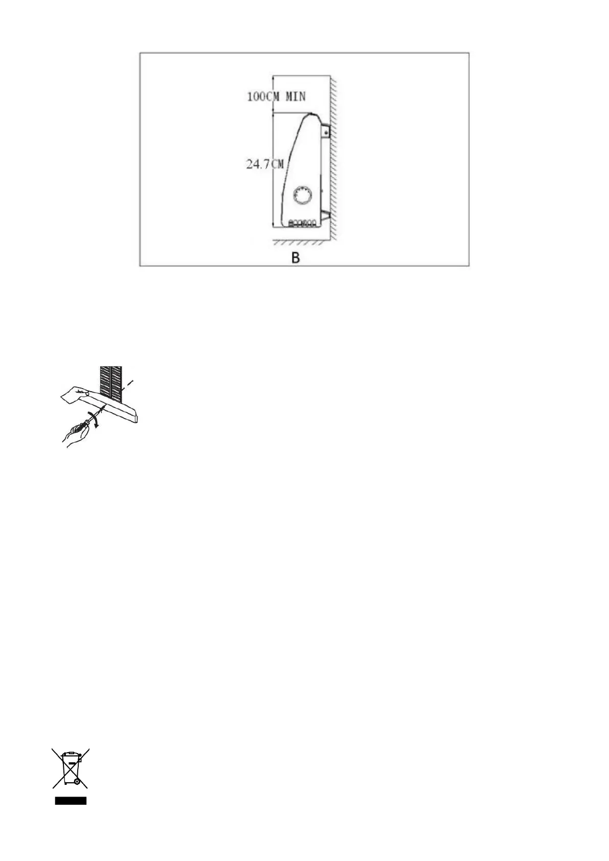 Þegar hitarinn er ekki festur upp á vegg, verður fótum að vera komið fyrir á hitaranum.
