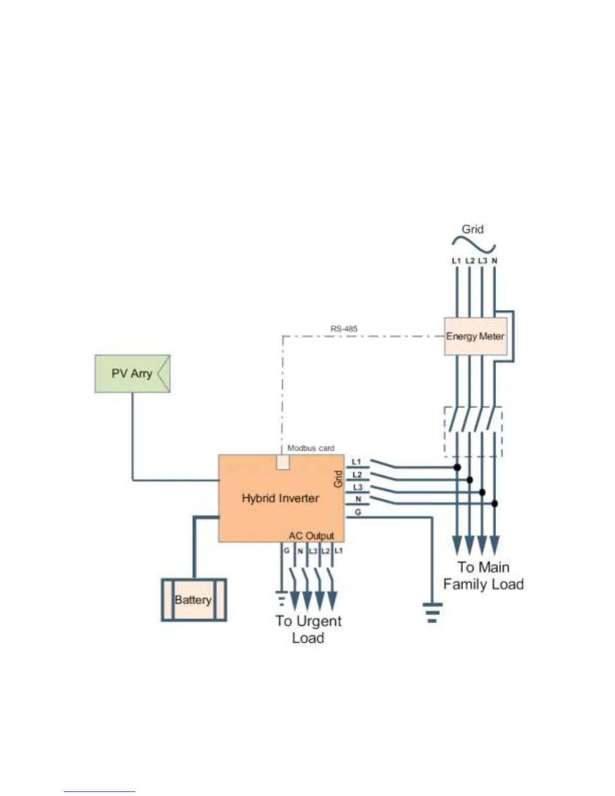 Equipped with Modbus card II, hybrid inverter is connected to energy meter with RS485