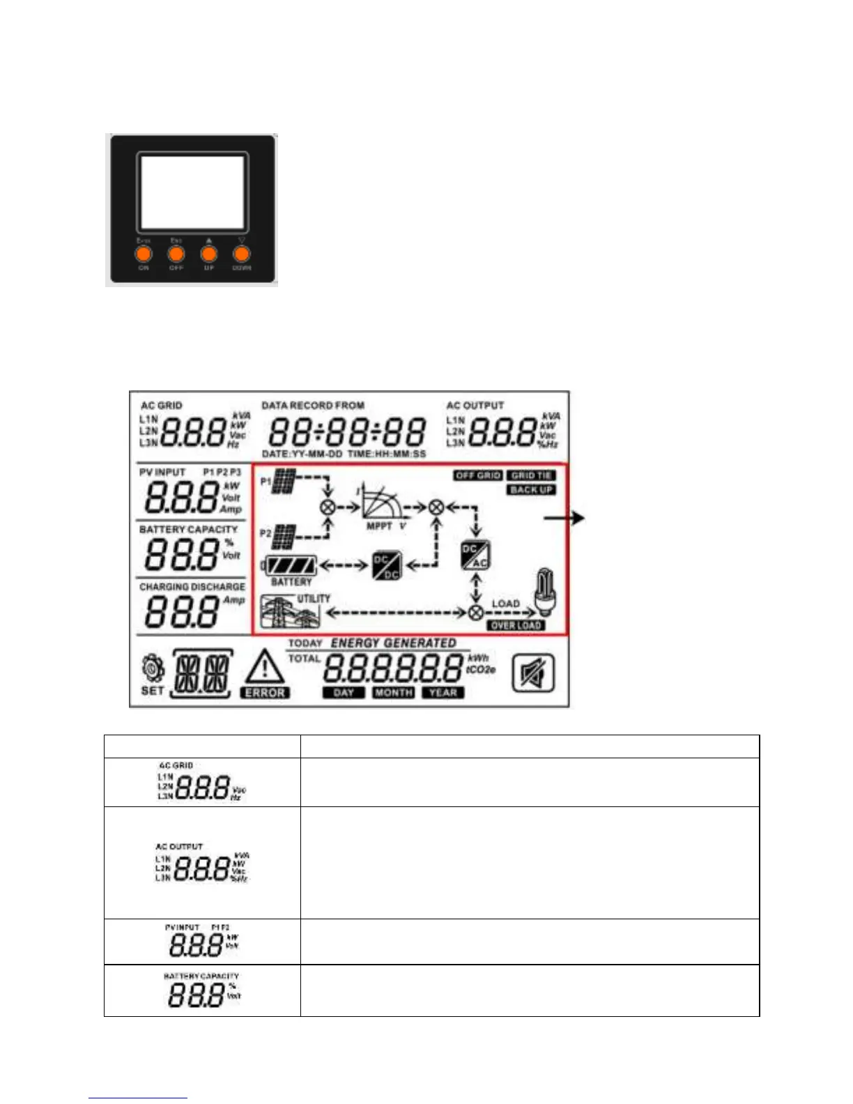 Volt: voltage, KW: power, P1: PV input 1, P2: PV input 2