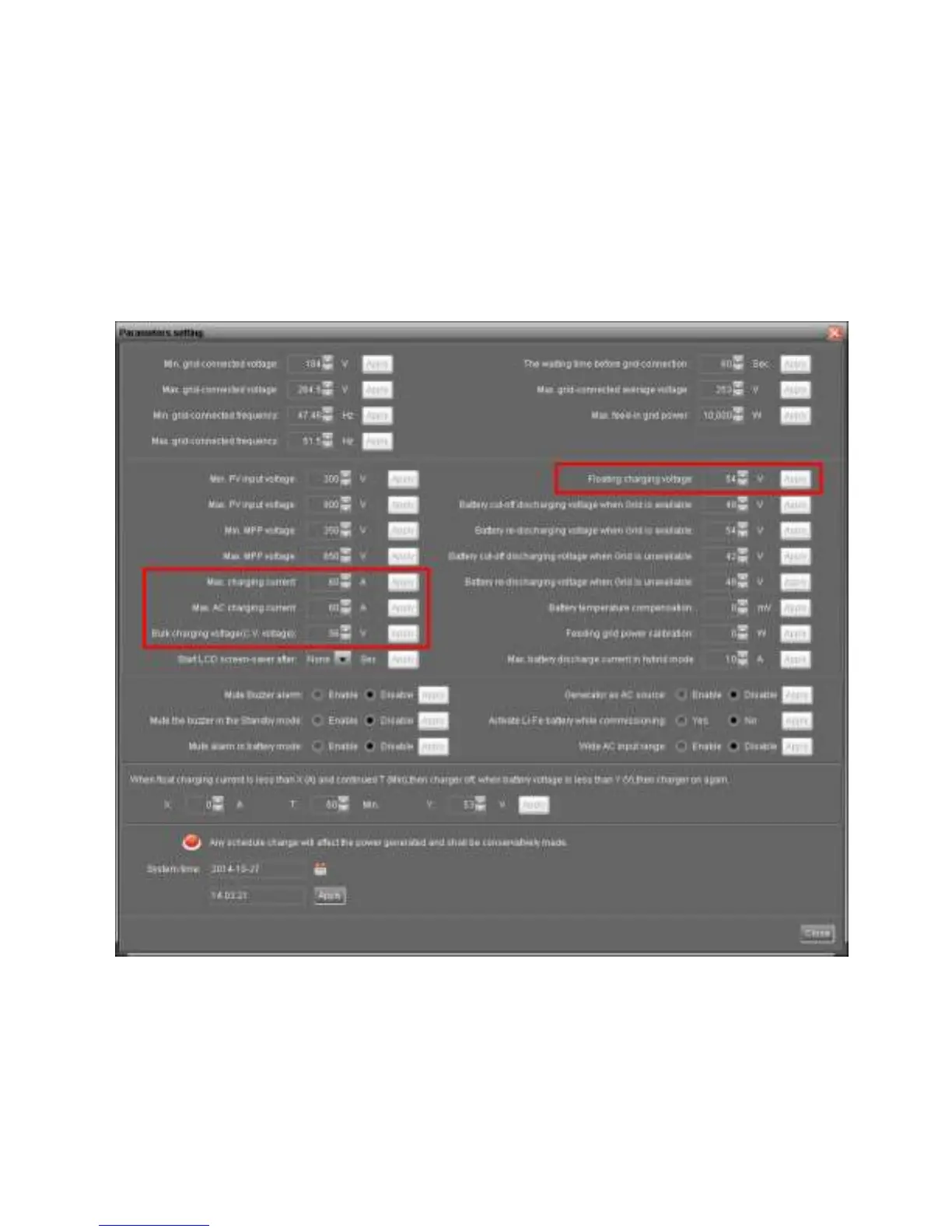 charging current is 10A. If using AGM/Gel or other types of battery, please consult with