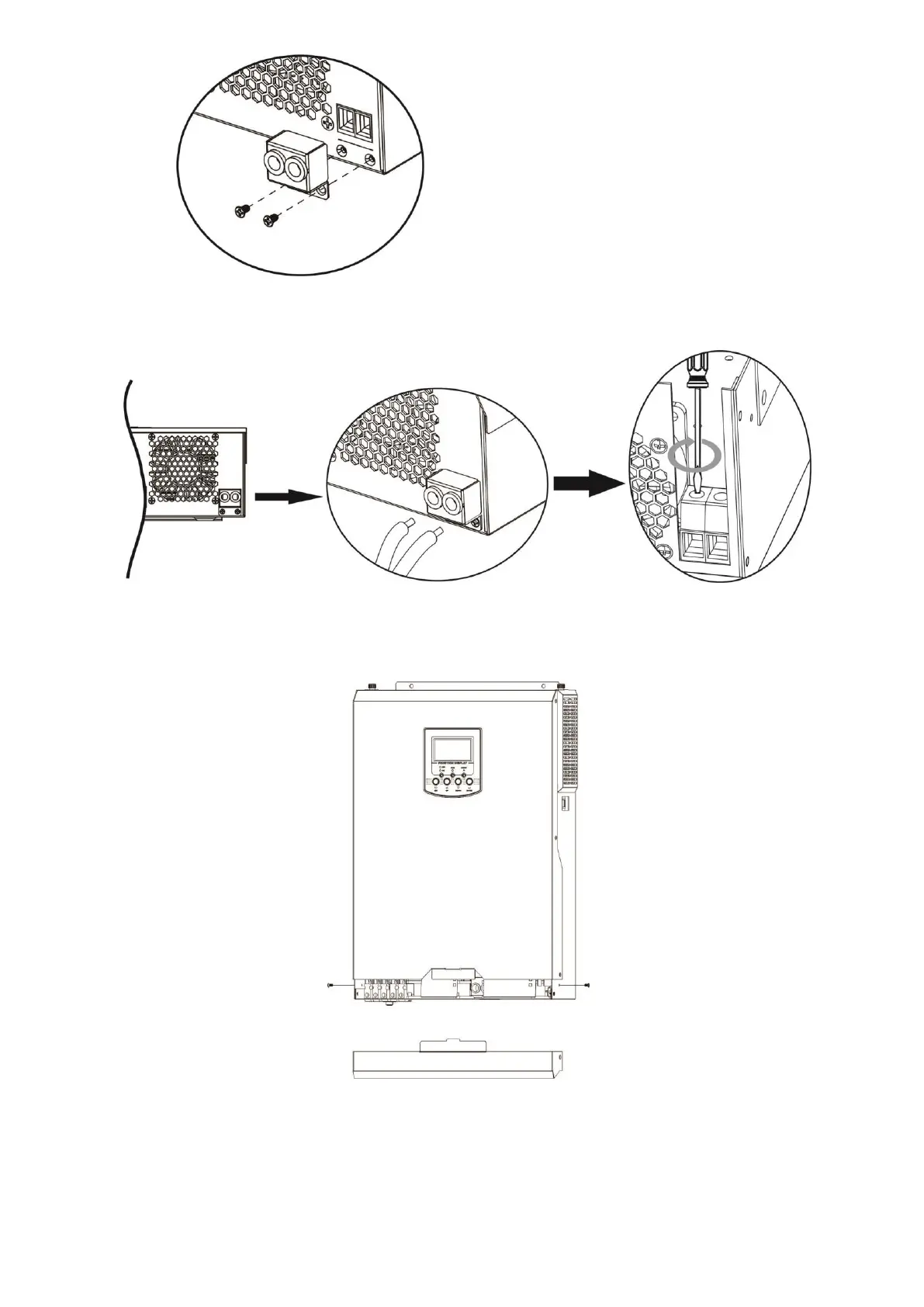 connection wire to negative pole (-) of PV input connector. Screw two wires tightly in clockwise direction.