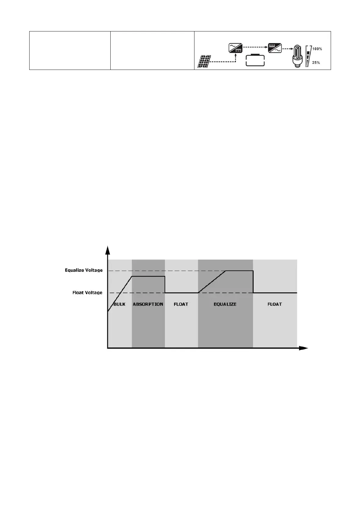 In Equalize stage, the controller will supply power to charge battery as much as possible until battery voltage