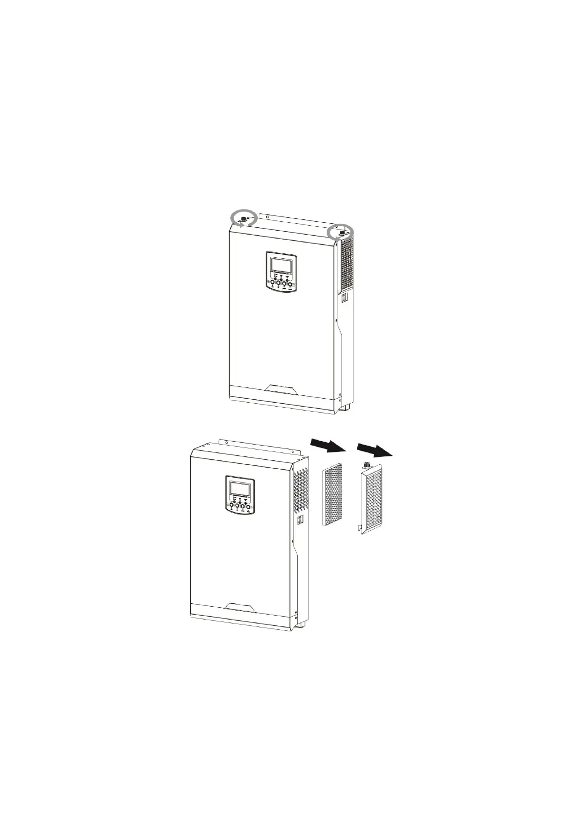 Step 1: Please loosen the screw in counterclockwise direction on the top of the inverter.