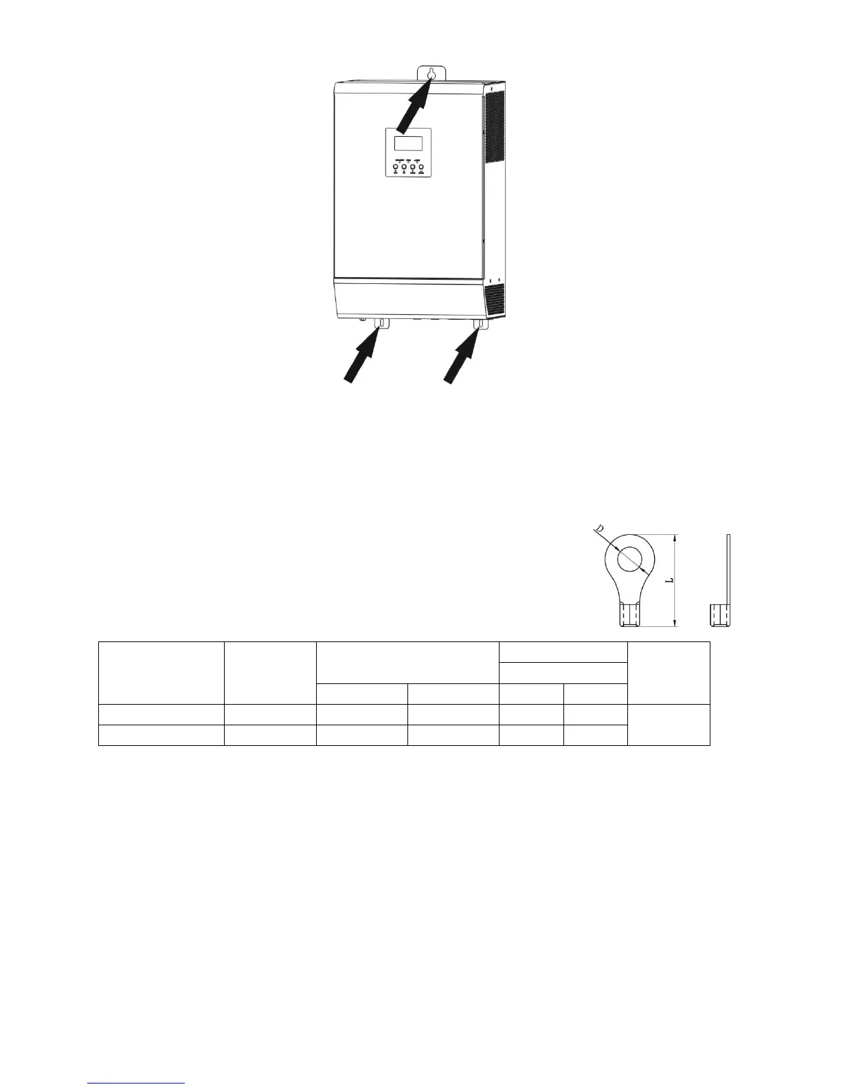tightened with torque of 10-12 Nm. Make sure polarity at both the battery and the inverter/charge is