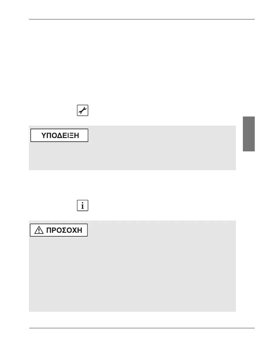 | Άμεση επαφή με εξαρτήματα της εγκατάστασης που