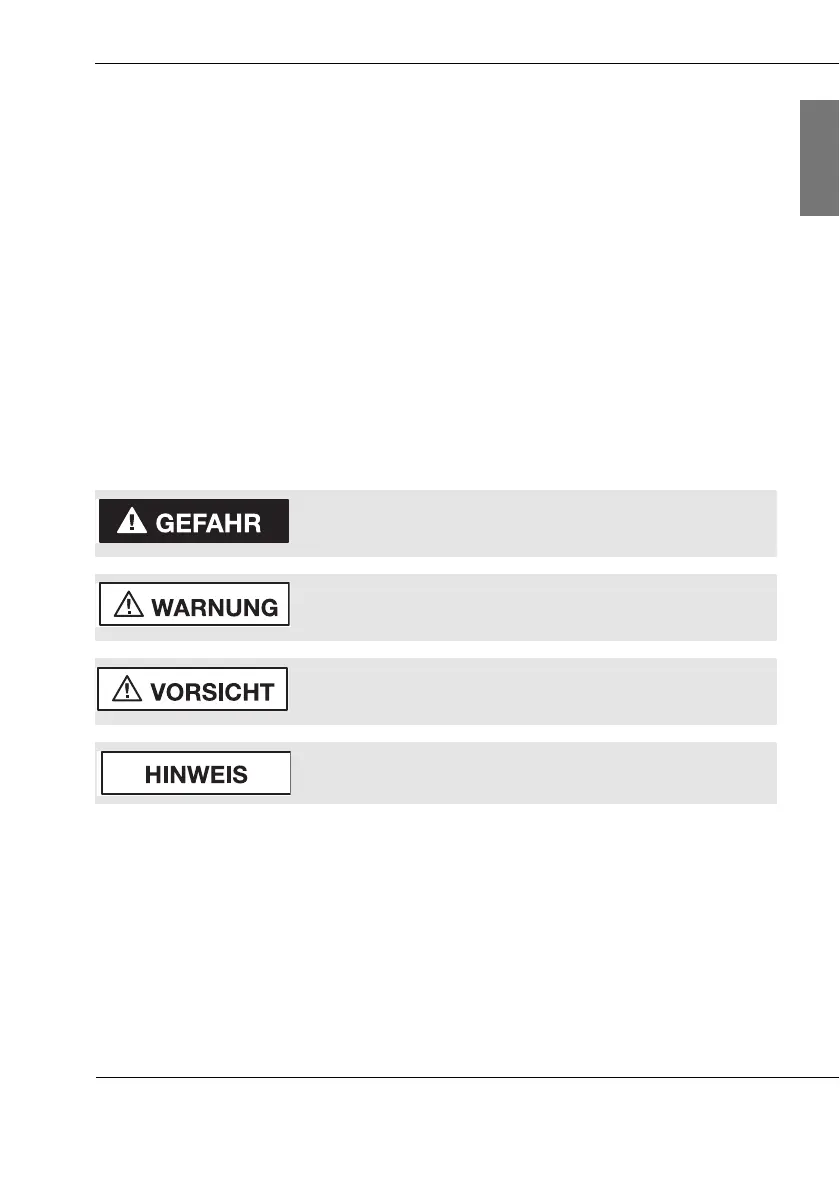 Das Signalwort der Warnhinweise kennzeichnet jeweils eine