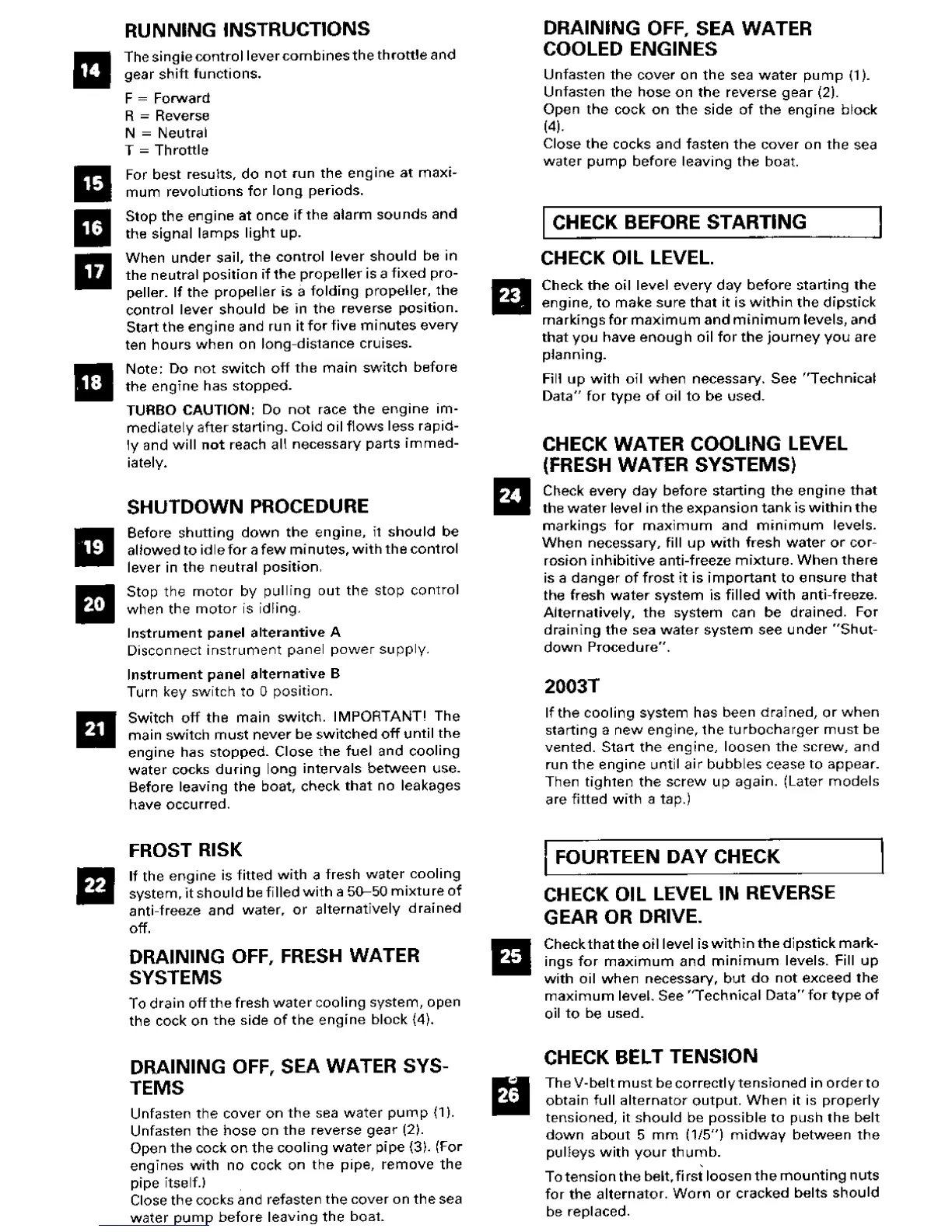 Volvo Penta 2001 - Running Instructions; Control Lever Operation; Shutdown Procedure; Engine Shutdown Steps