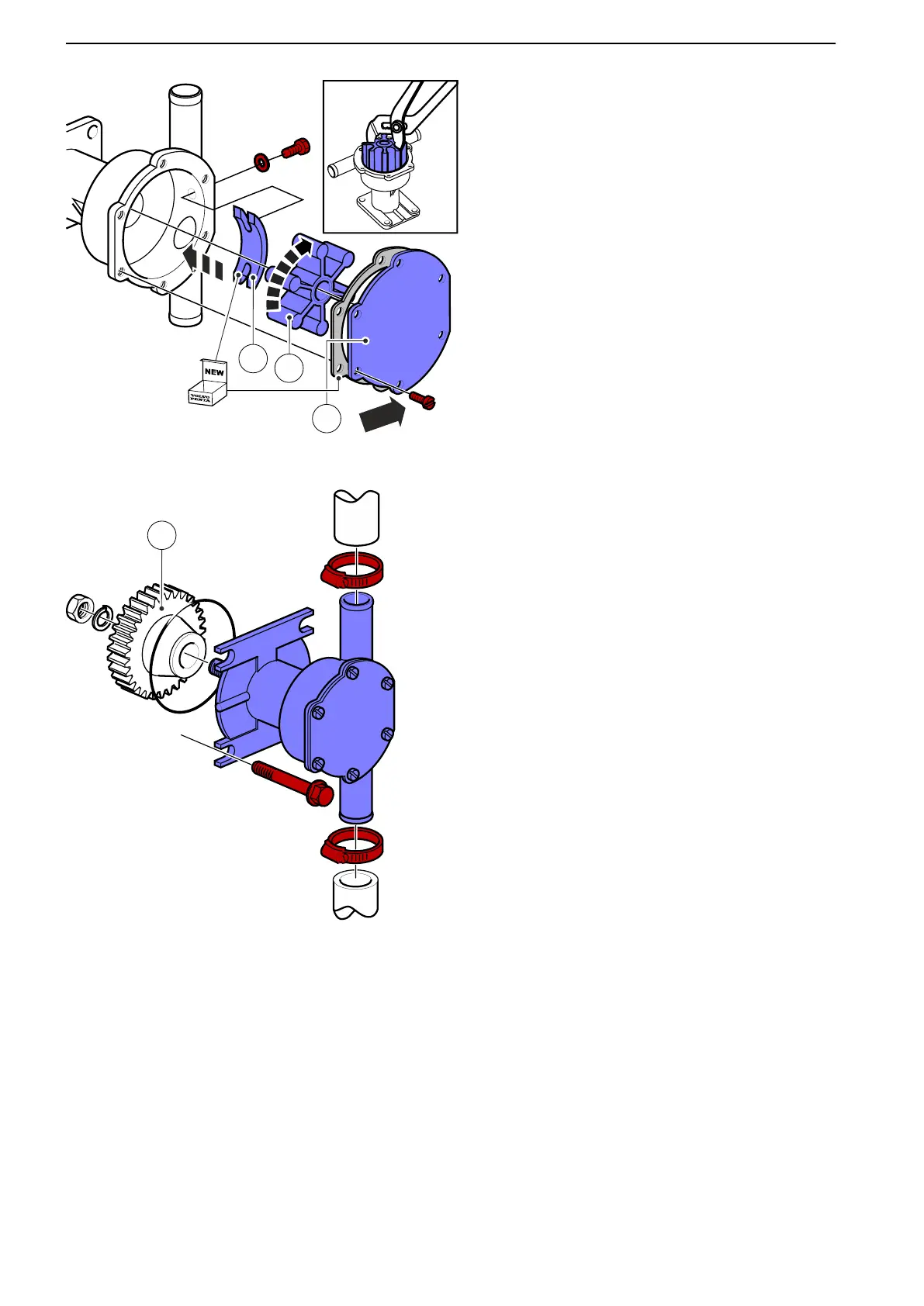 Install the impeller cover (3) and gasket.