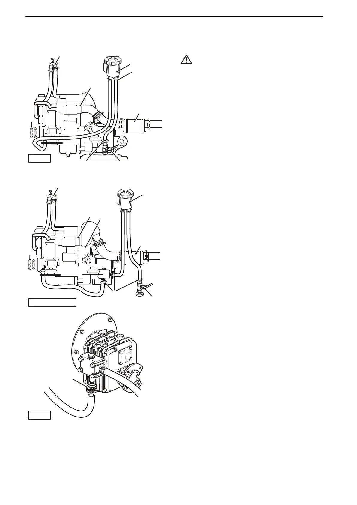 exhaust riser and drain tap (9) and silencer (7) etc.