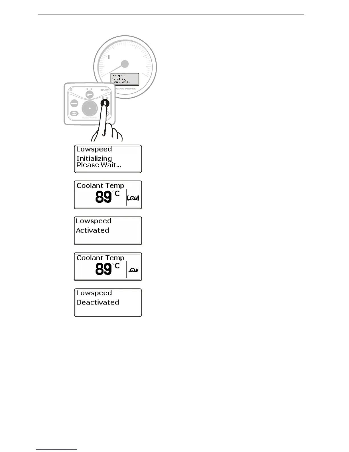 2 Press the neutral button (N) to activate Lowspeed.