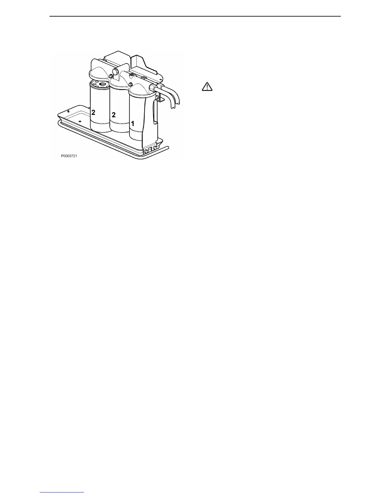 3 Unscrew the bypass filter (1) and the oil filters (2)