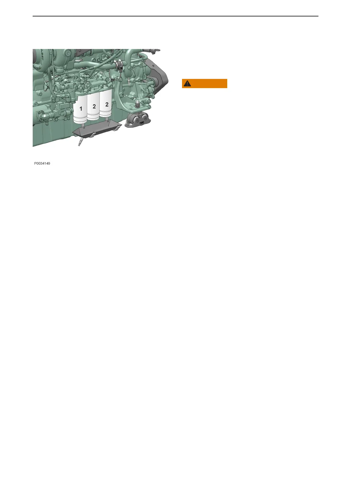 3 Unscrew the bypass filter (1) and the oil filters (2)