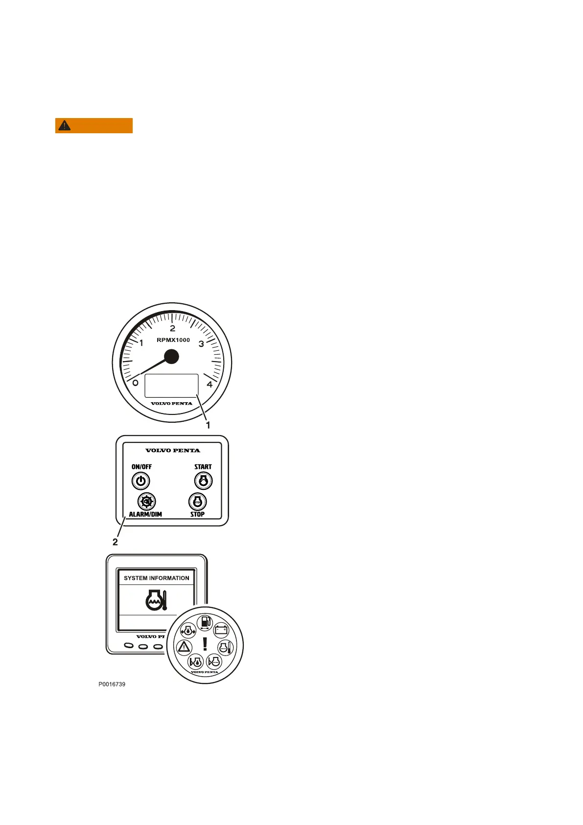 Read off the instruments and alarm display