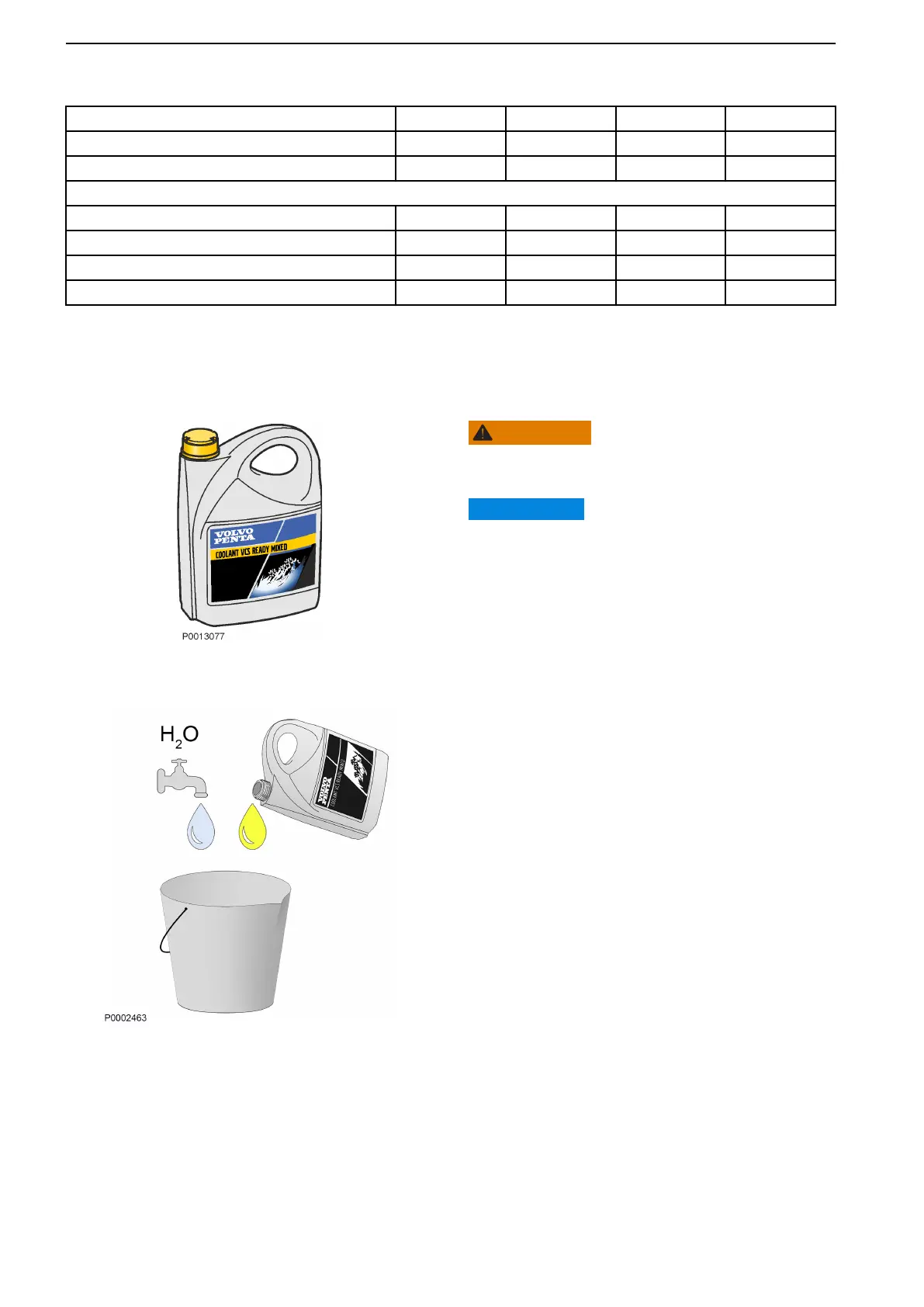 NOTICE! Always use “Ready Mixed” coolant if water
