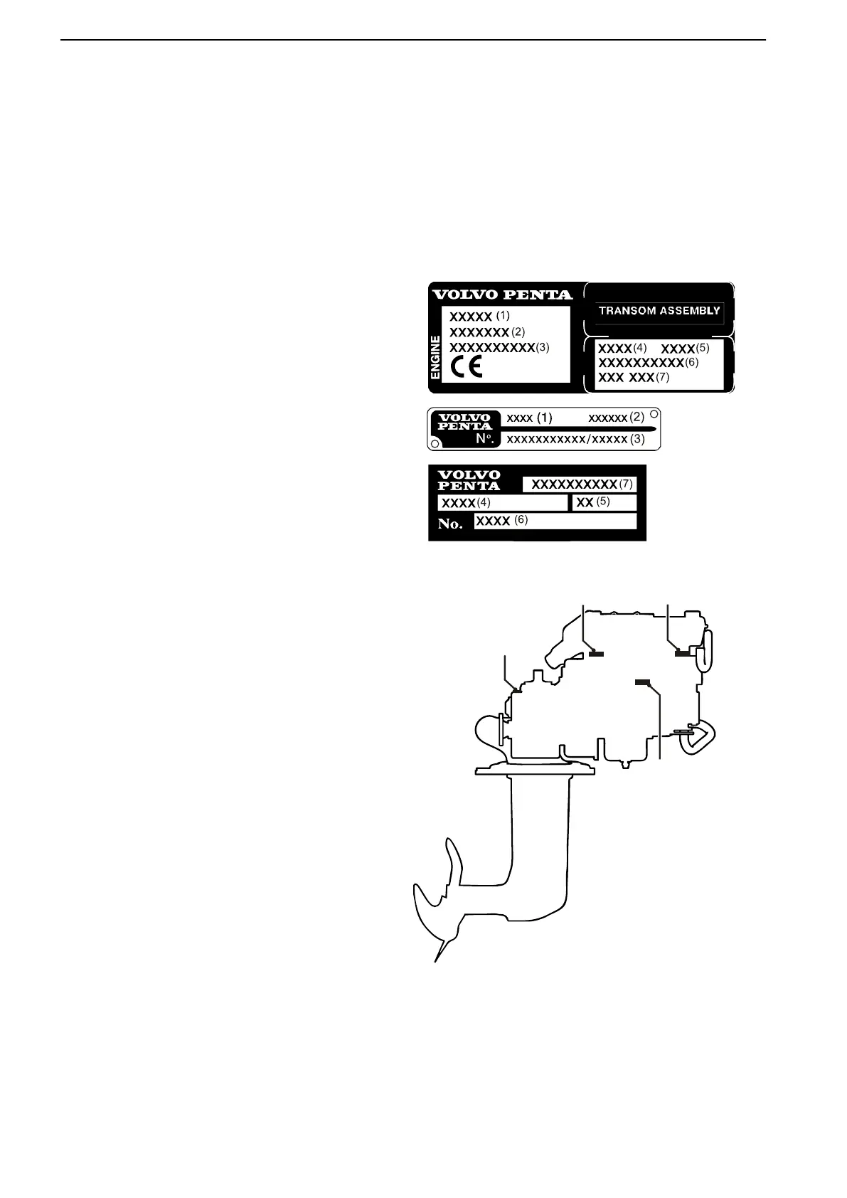 There are type plates on the engine and transmission, marked with identification numbers. This information must