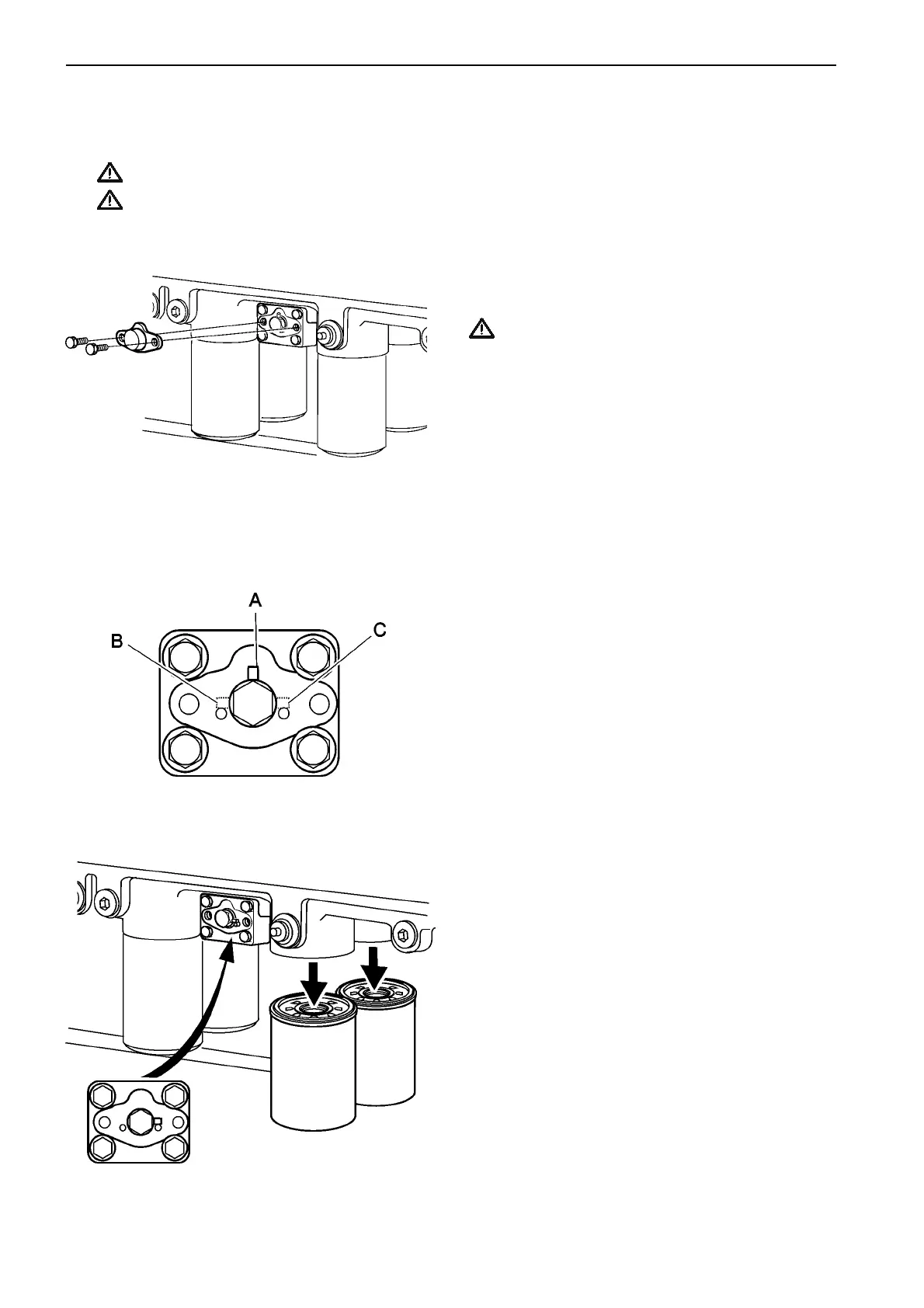 WARNING! Reduce the engine speed to idle when changing oil filters on a running engine.