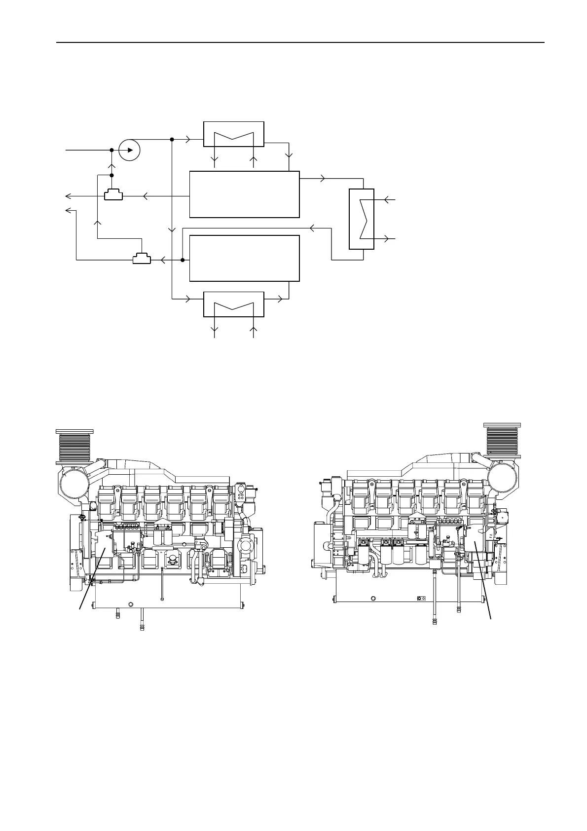 The engine cooling water is cooled by, e.g, a box cooler, a grid cooler, or any other external heat exchanger. The