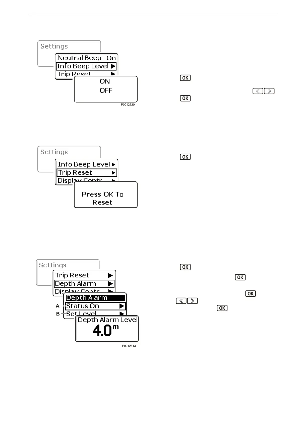 1 Navigate to Depth Alarm in the settings menu.