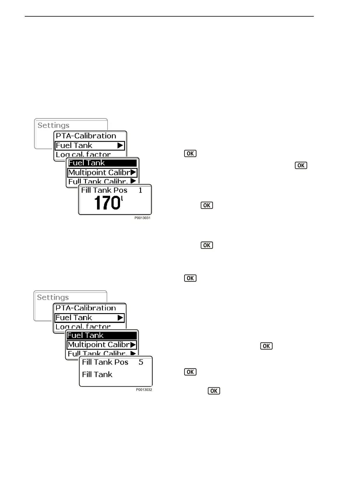 Settings for Fuel Tank Volume, Empty Tank Calibra-