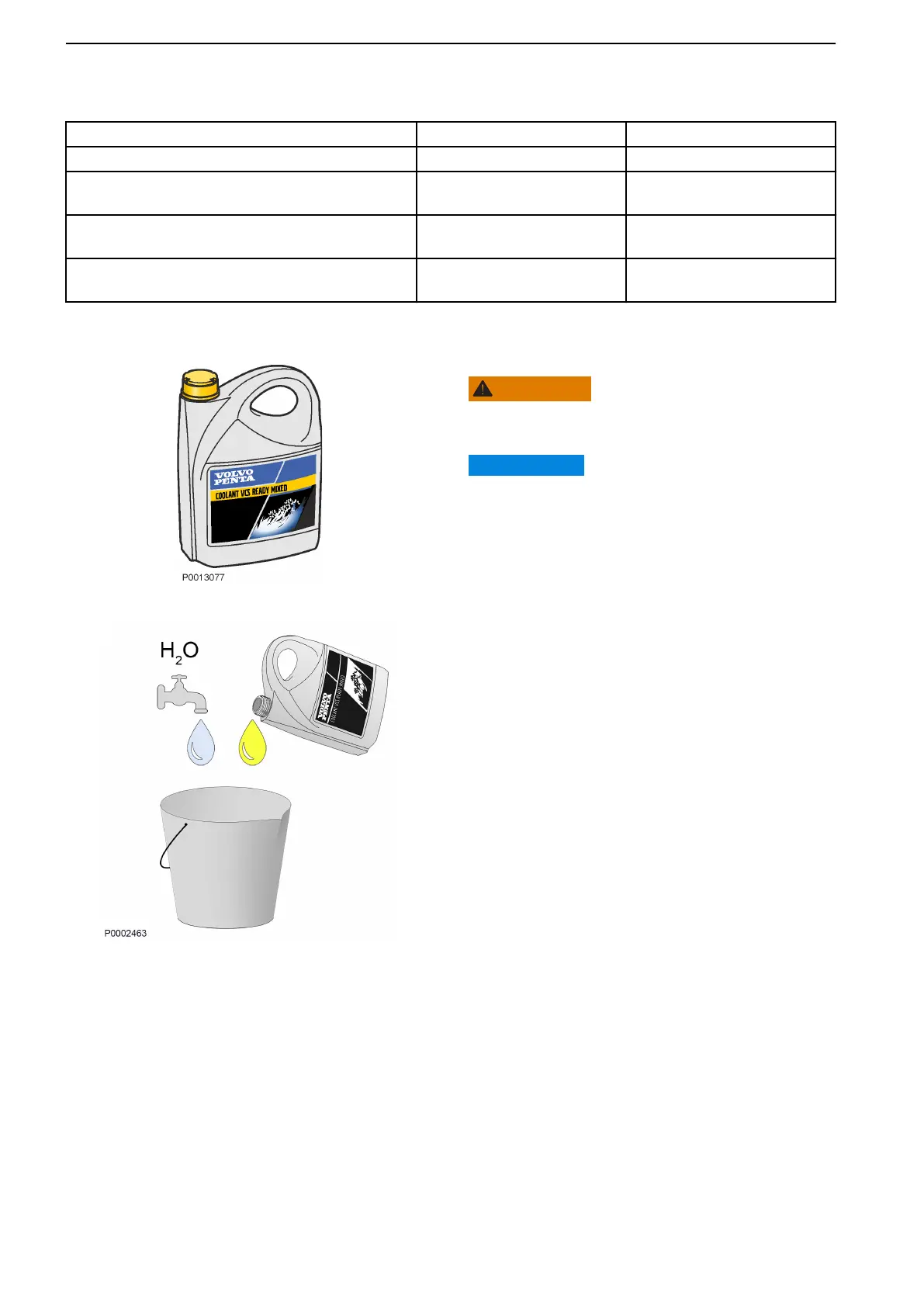 NOTICE! Always use “Ready Mixed” coolant if water