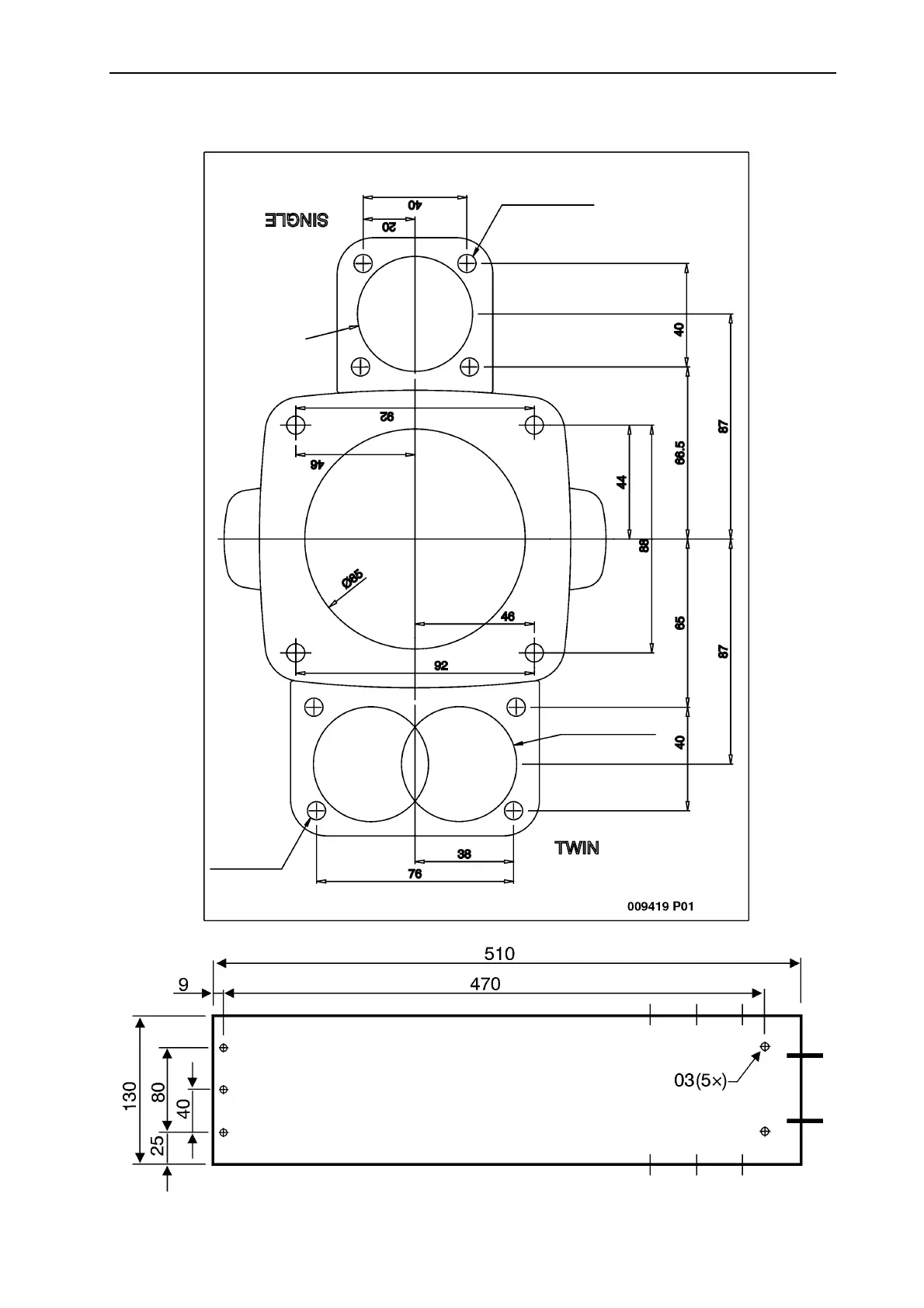 Dibujo acotado, mandos, panel de mandos, unidad de propulsión