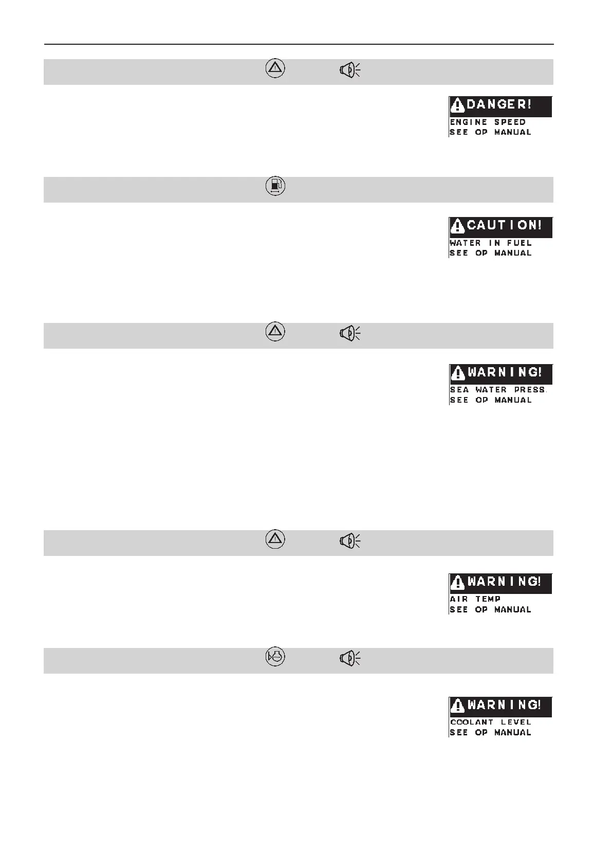 • Check coolant level. Please refer to “Maintenance: Fresh water system”.
