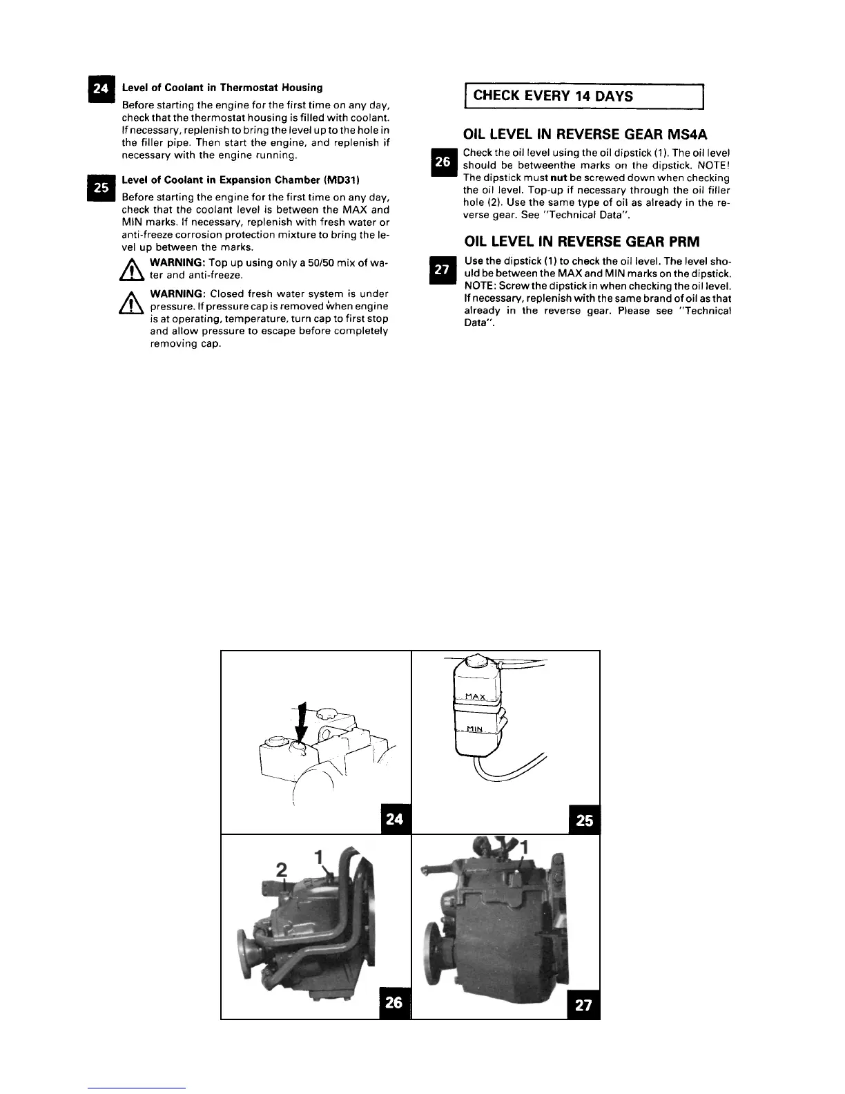 Volvo Penta MD - Every 50 hours of operation; Service every 100 hours of operation; Service every 200 hours of operation