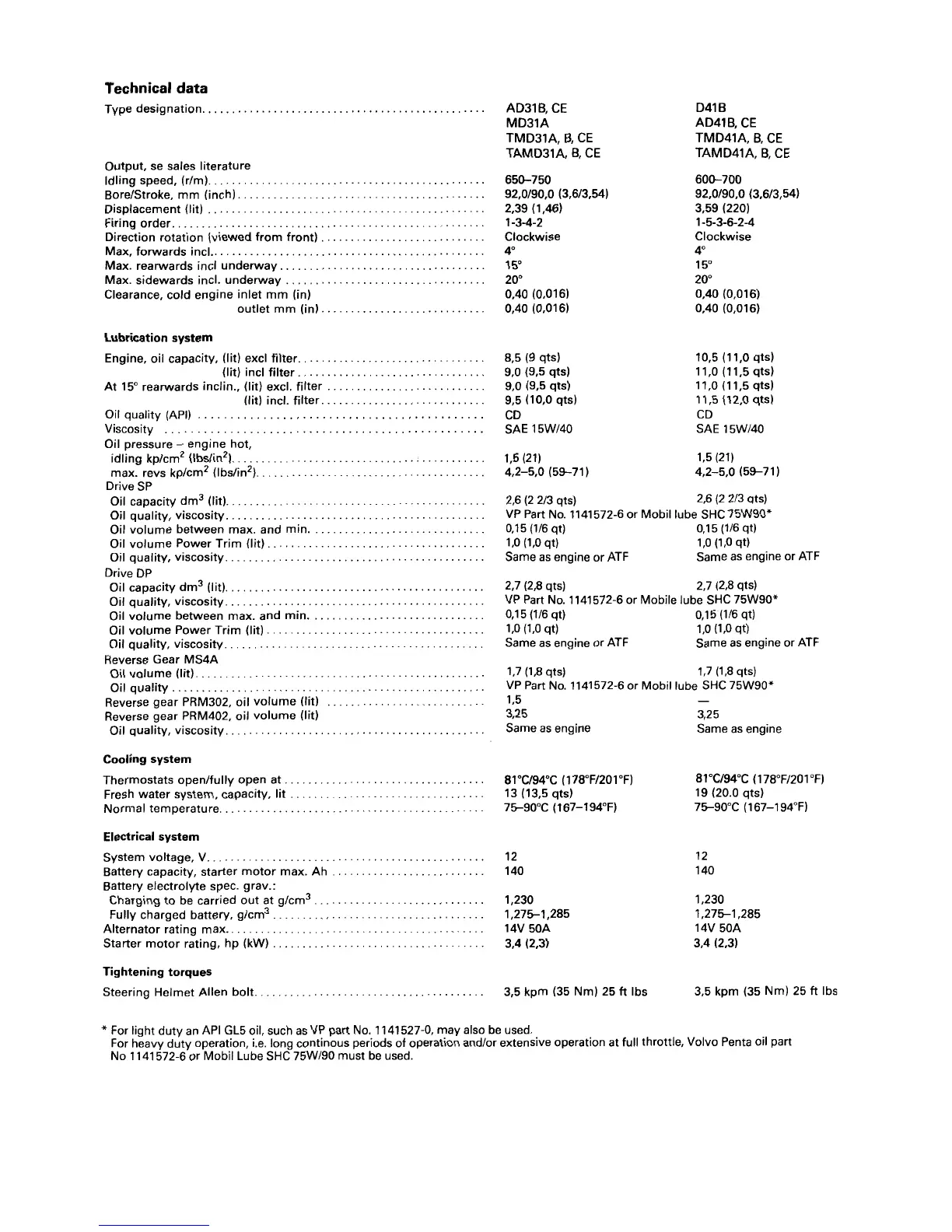 Volvo Penta MD - Technical Data