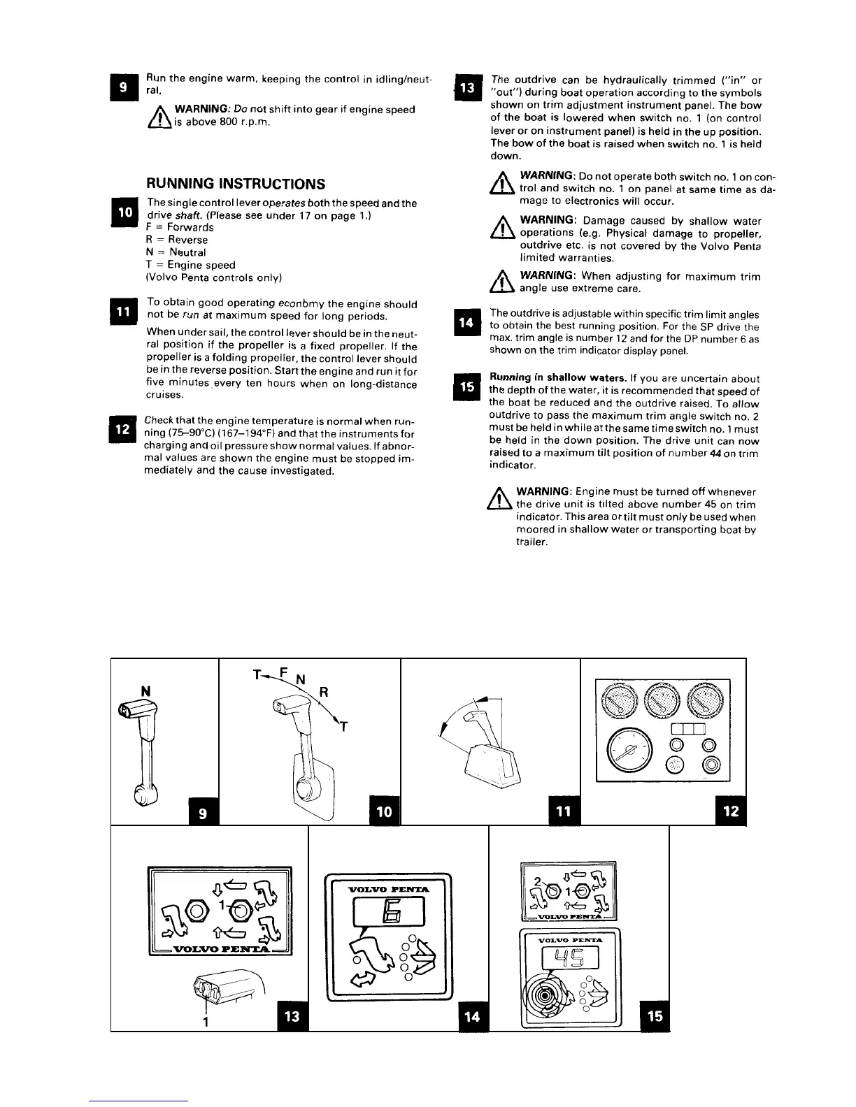 Volvo Penta MD - Running in Shallow Waters; Shutdown Procedure; Checks and Service; Controls and Maintenance