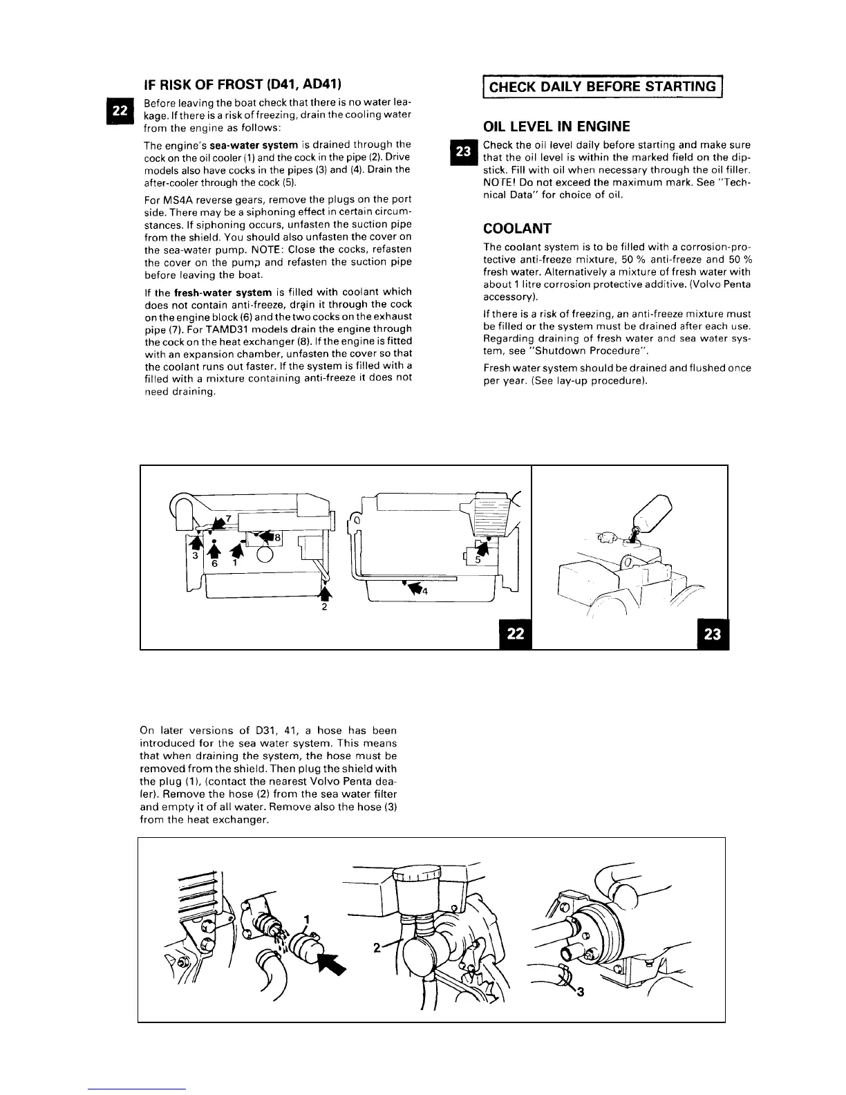 Volvo Penta MD - Check of Oil Level in Engine; Check of Coolant