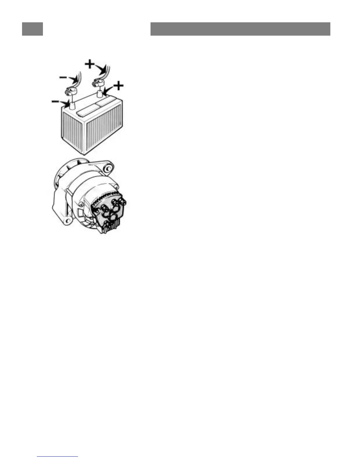5. Do not use a rapid charging unit when the alternator is connected to the battery.