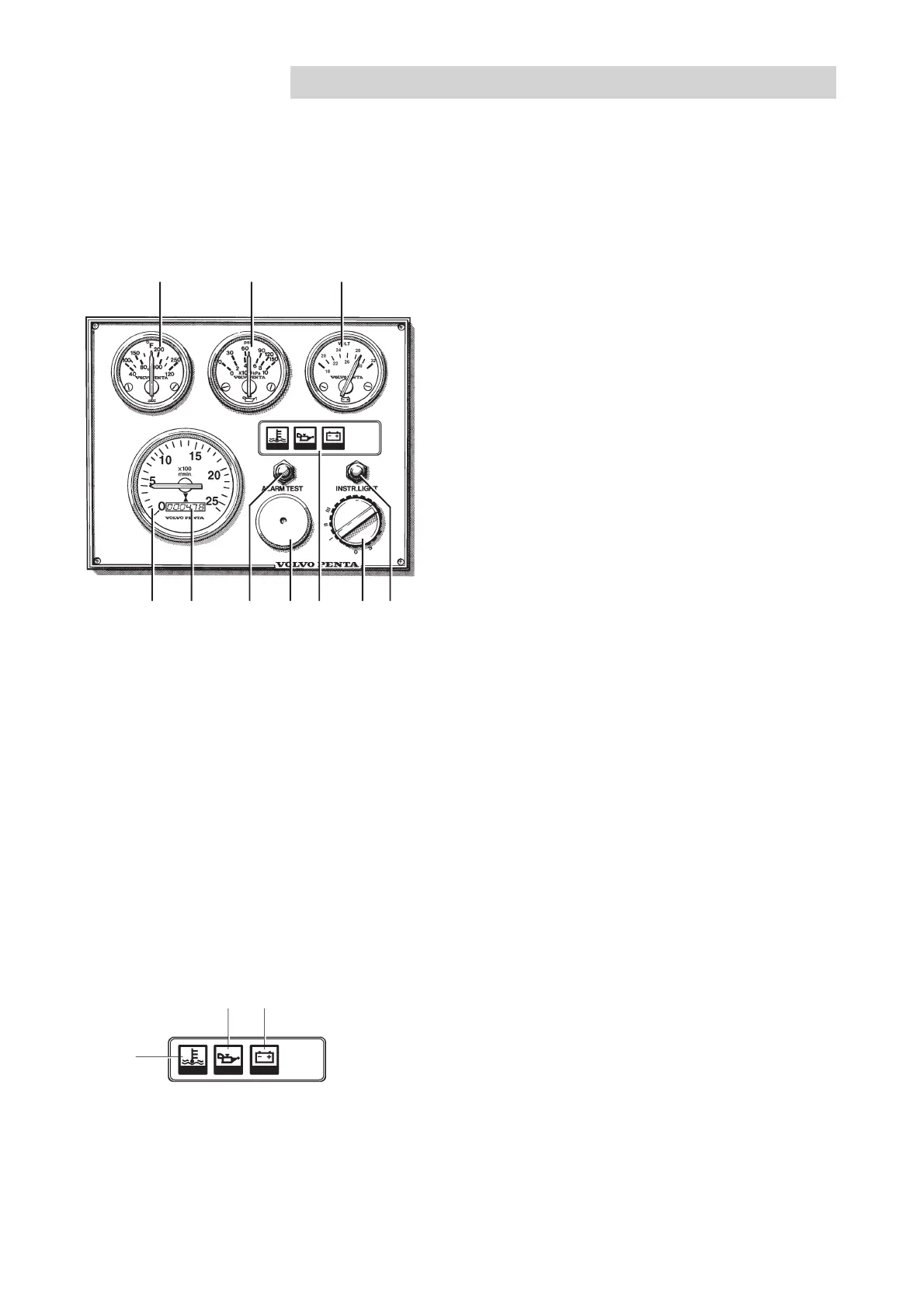 The instrumentation is also supplied separately in sets if Volvo Penta instrument panels are not used. These sets in-