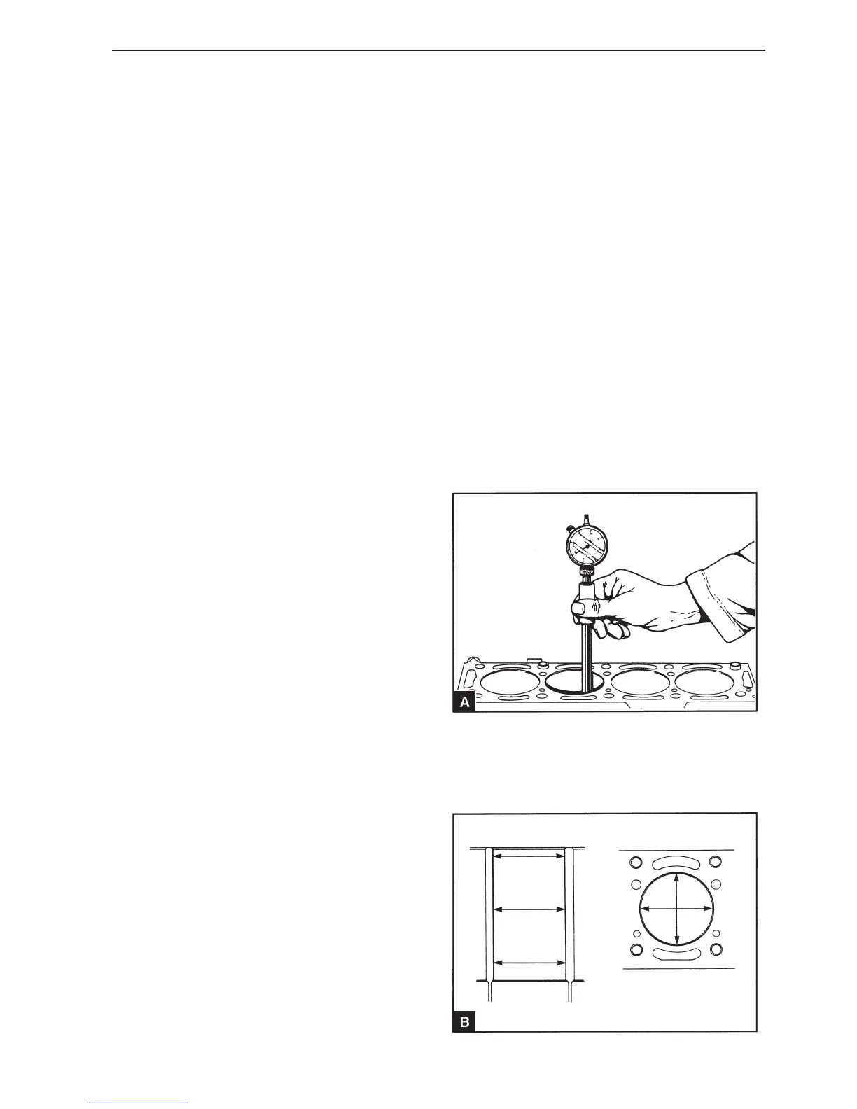 The top, bottom and center of the cylinder bore