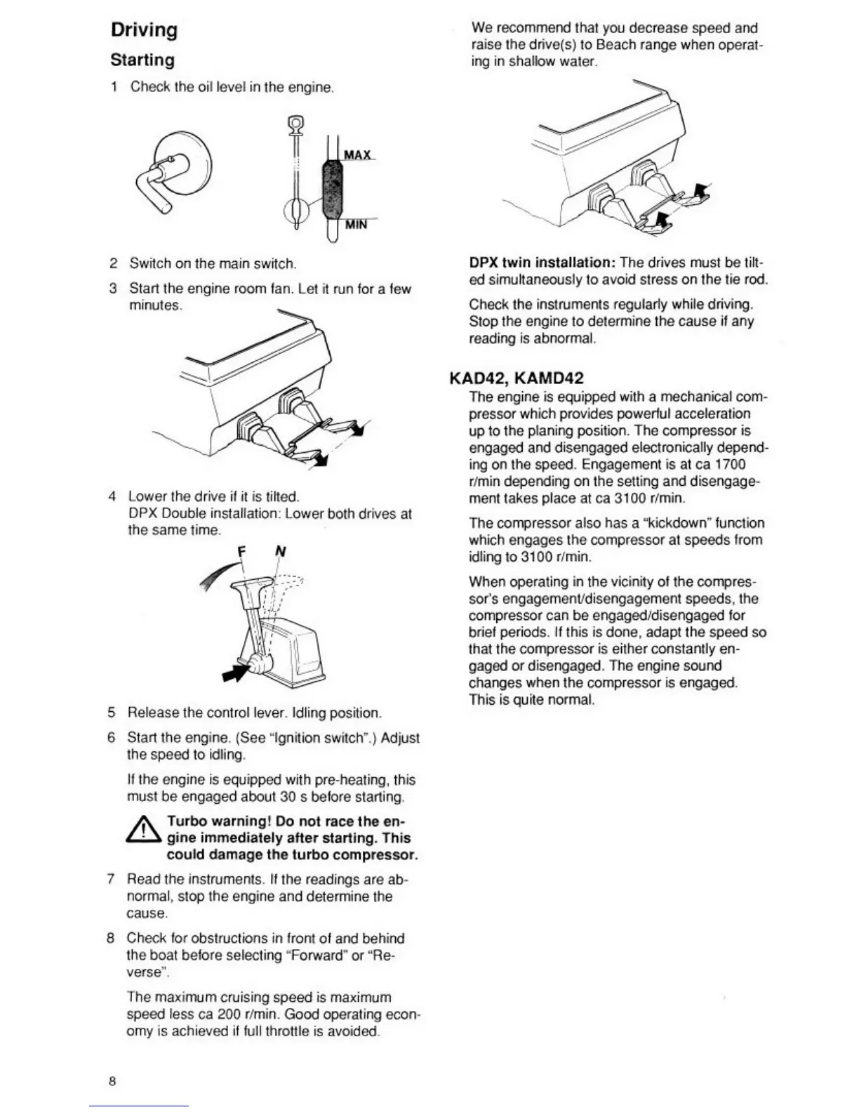 Volvo Penta TAMD31 - Driving and Starting Procedures; Engine Starting Sequence; Turbo Compressor Functionality (KAD42;KAMD42)