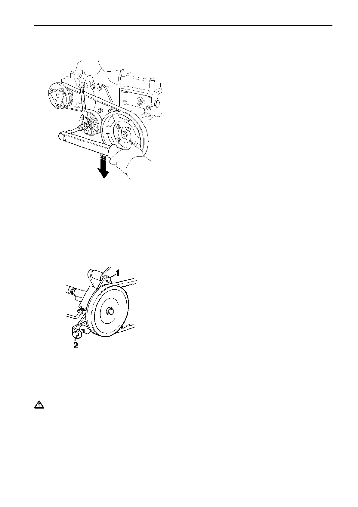Undo retaining screw (1). Tension the belt with adjust-