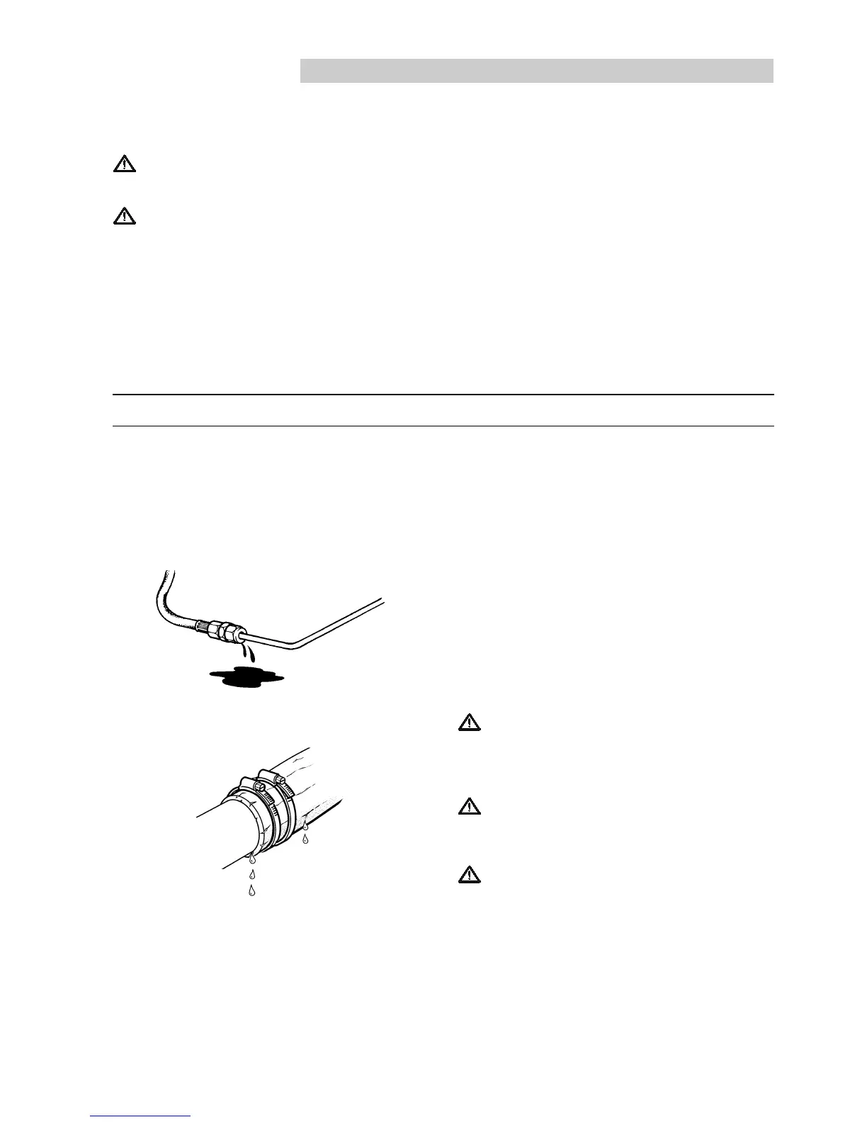 connections, damaged hoses and electric cables.