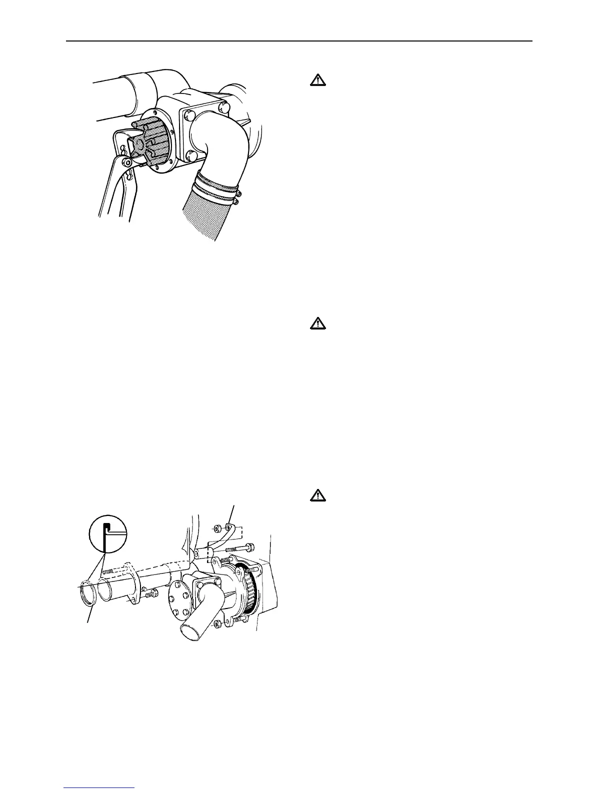the sea water pump from the engine (see next chap-